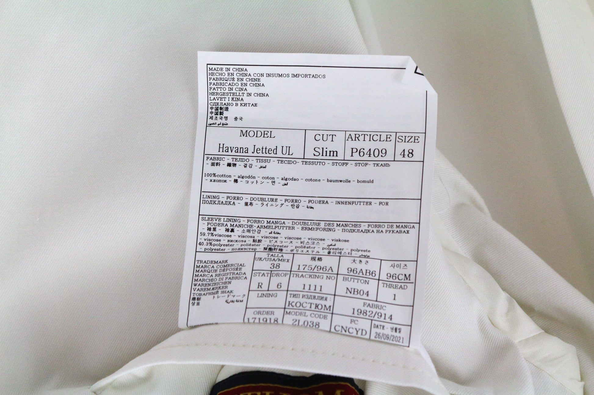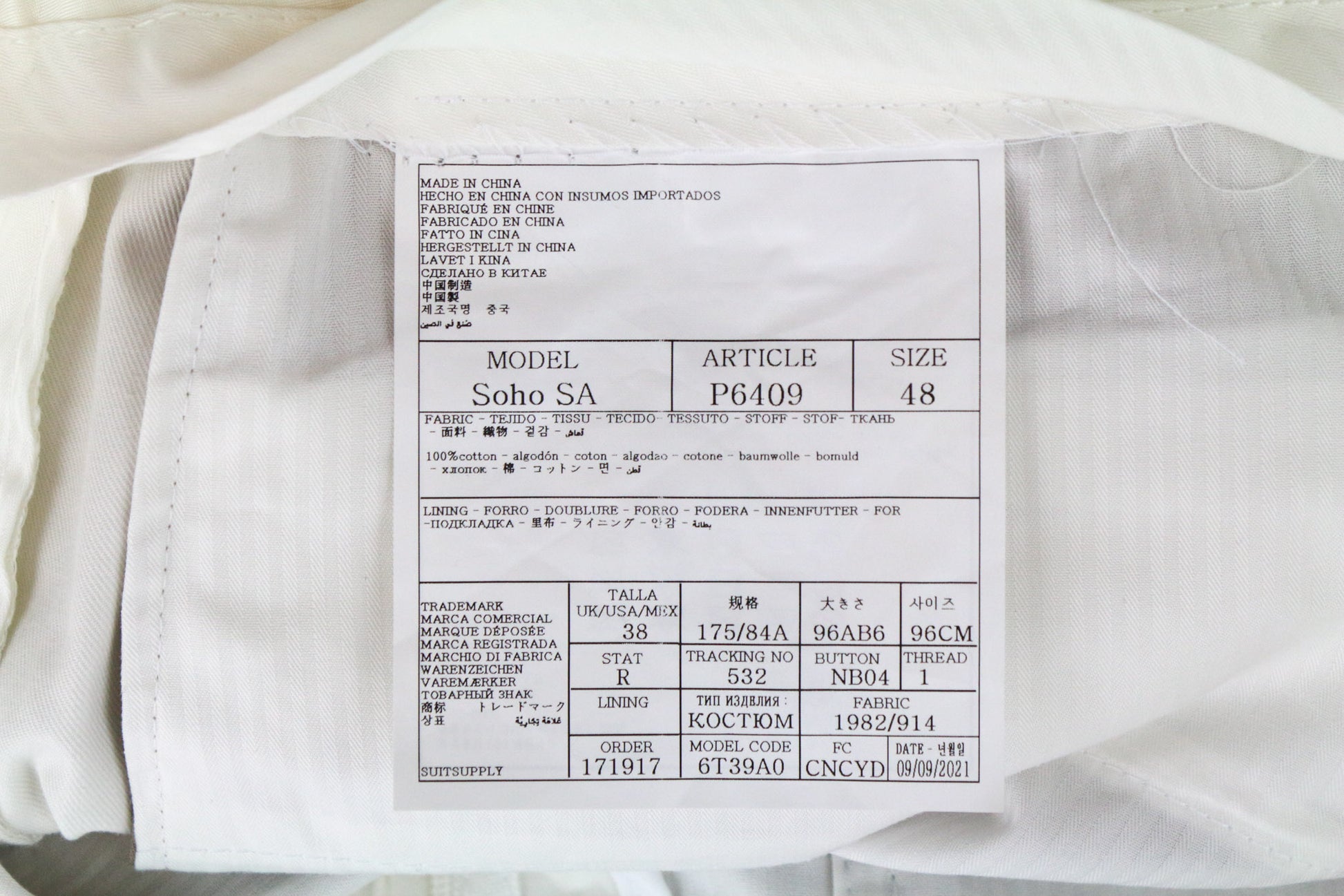SUITSUPPLY Havana Men's Suit UK38R Off-White Slim Cotton Single-Breasted 2Piece