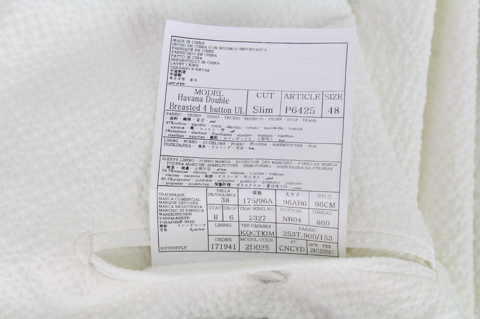 SUITSUPPLY Havana Men's Suit UK38R Off-White Stretch Slim Cotton 2-Piece Fit