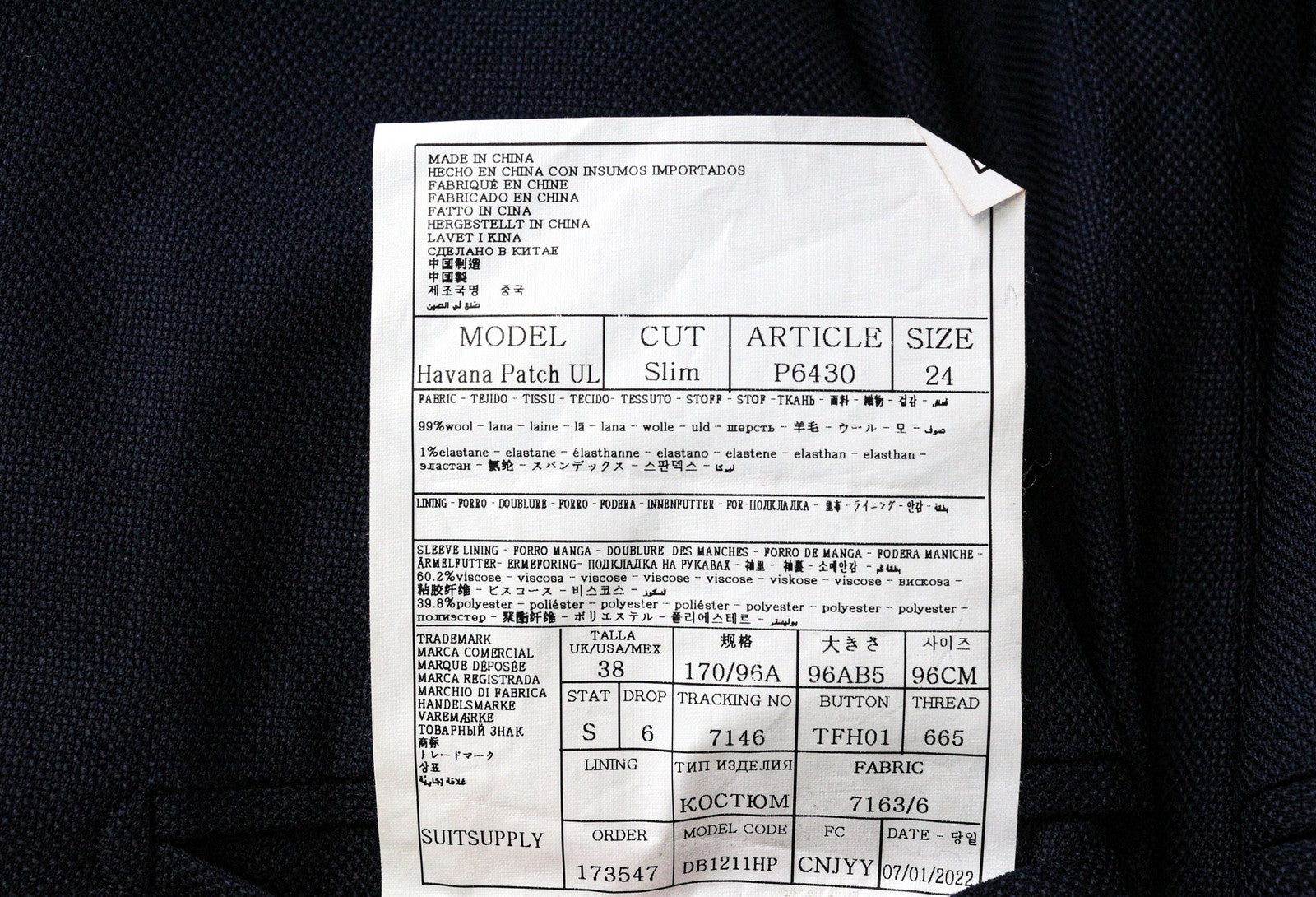 SUITSUPPLY Havana Men's Suit UK38S Slim 2 Piece Blue Formal Wool Stretch Unlined
