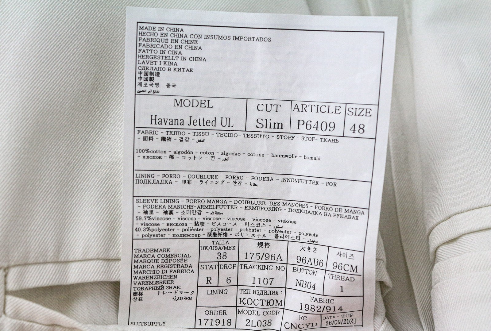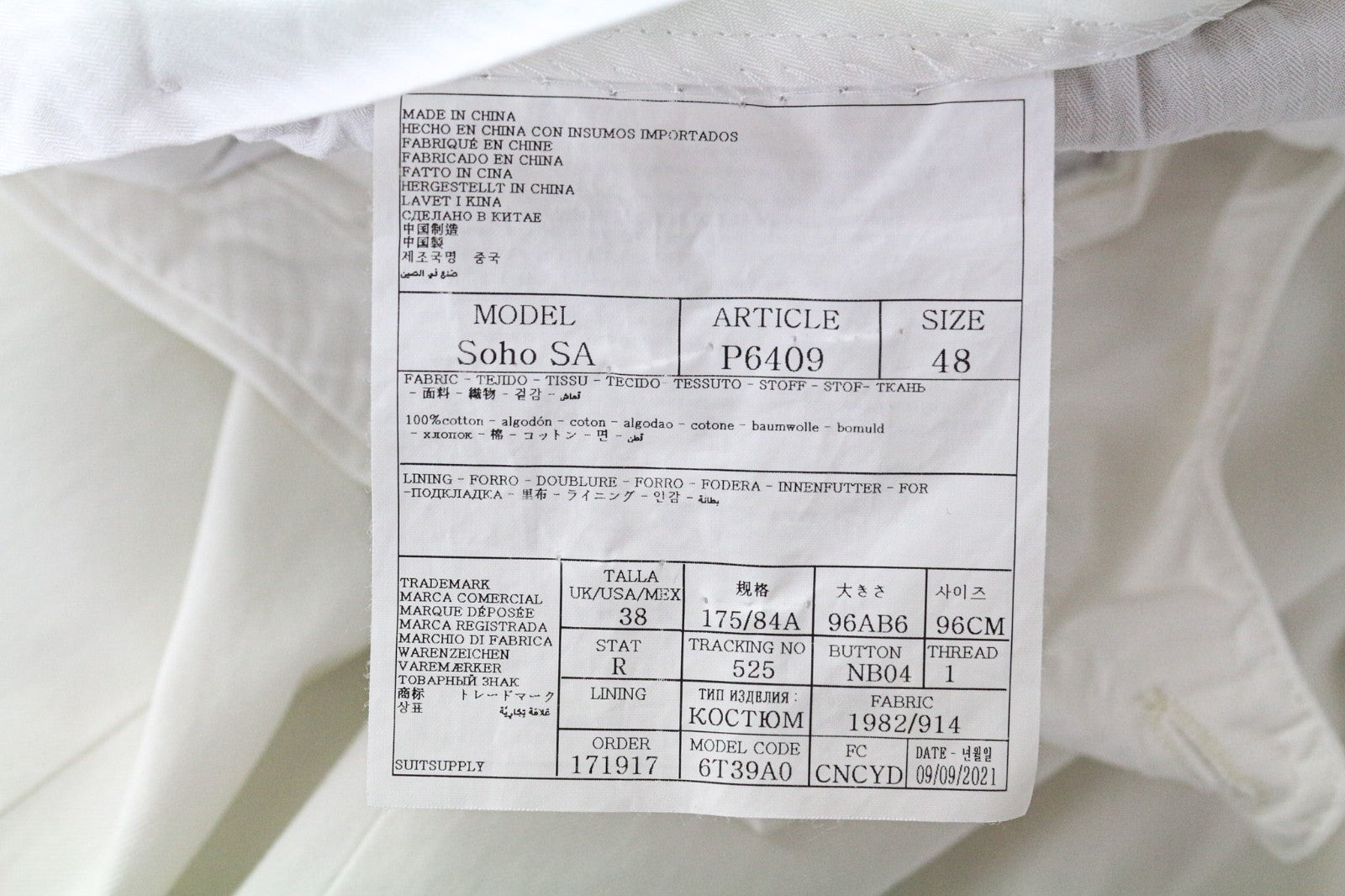SUITSUPPLY Havana Men's UK38R Off-White Slim Cotton Single Breasted 2Pc Blazer