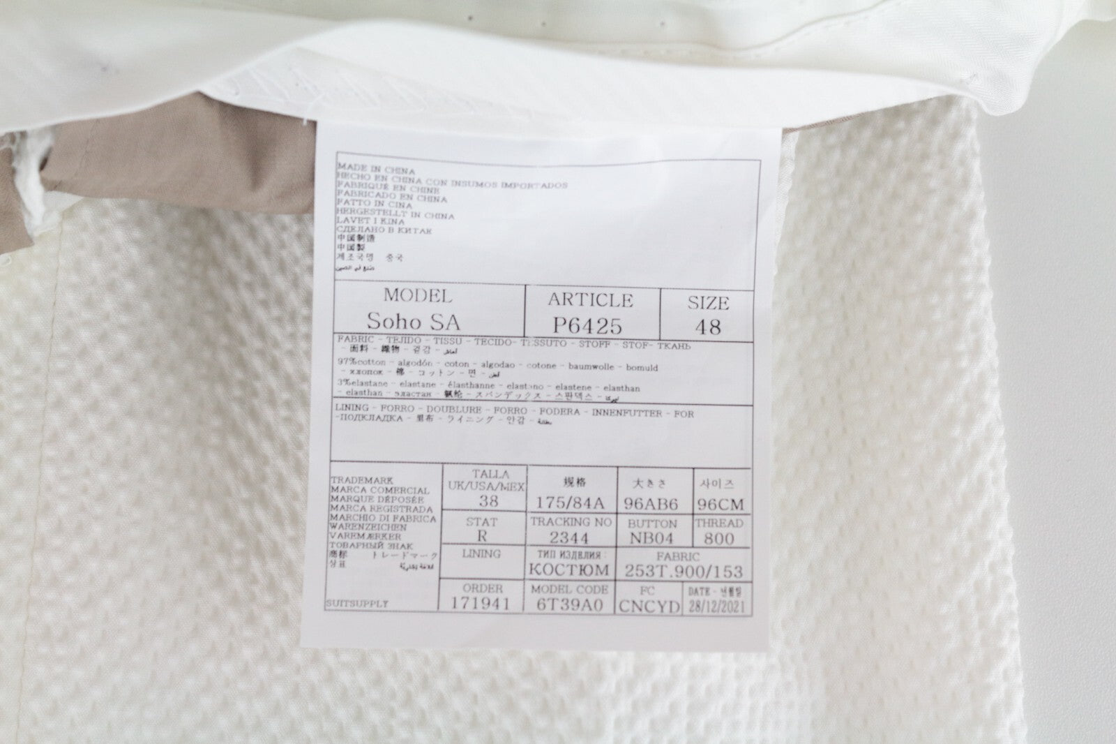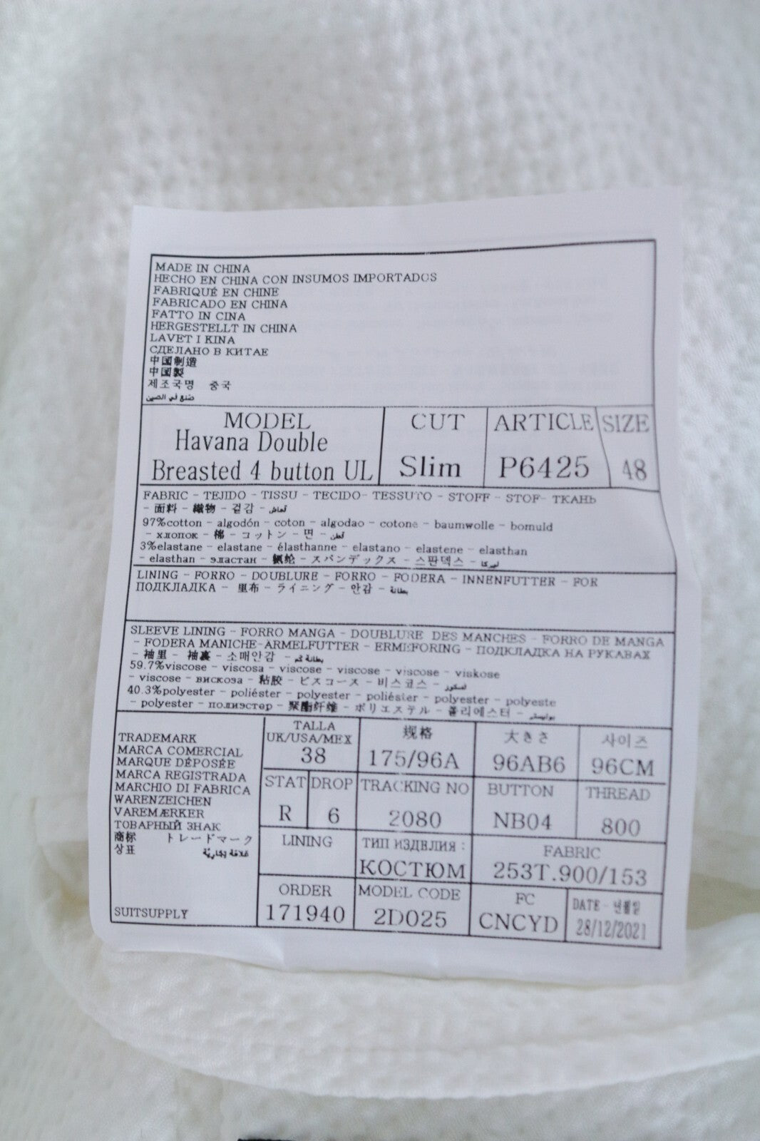 SUITSUPPLY Havana Men's UK38R Slim White Textured 2-Piece Suit