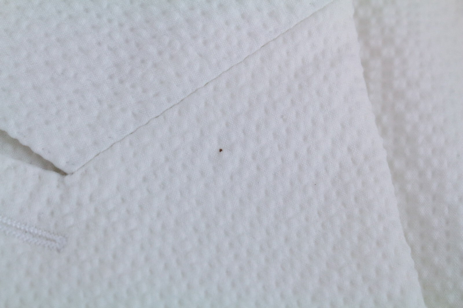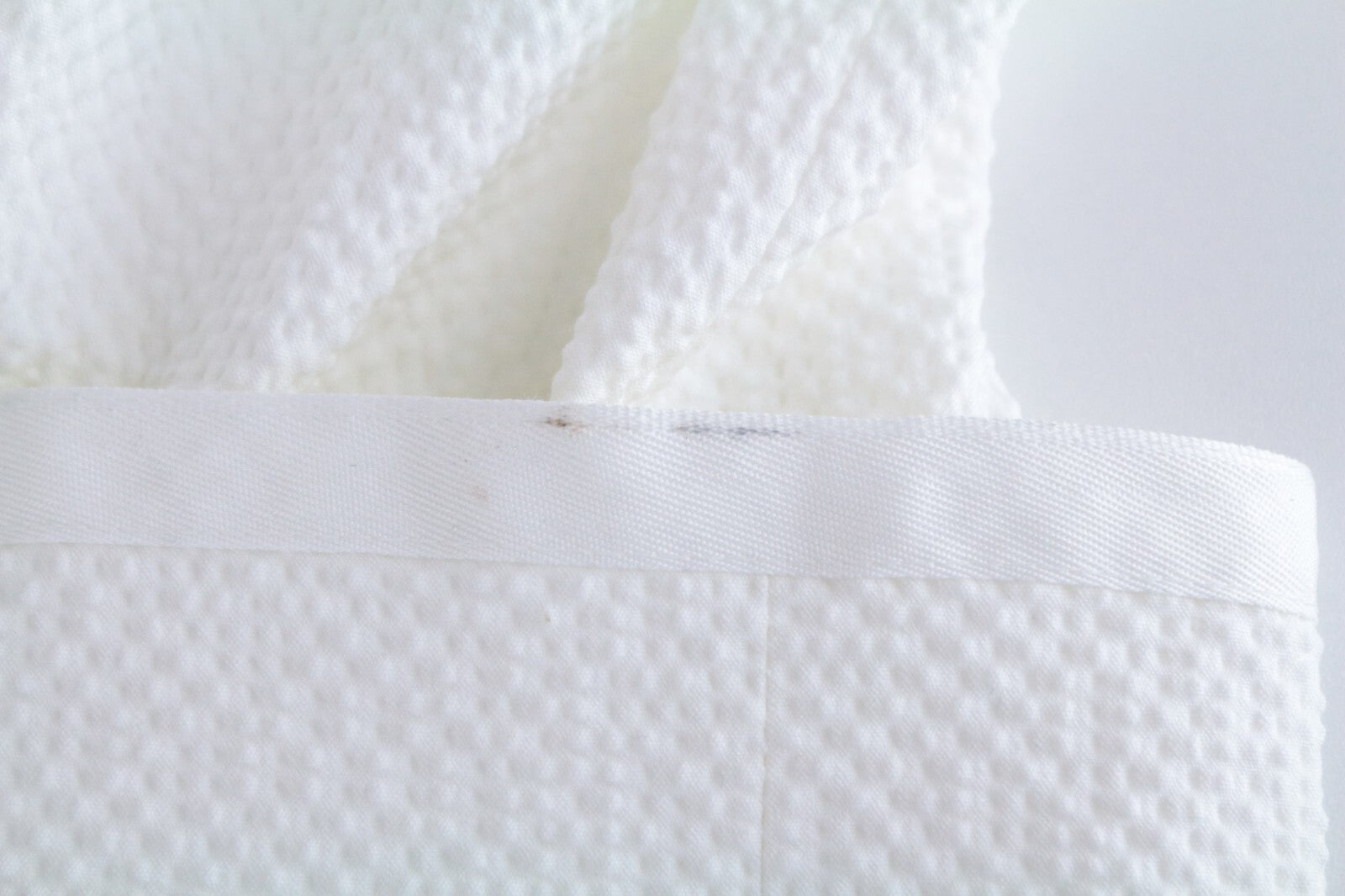 CONDITION: Used. Mended and stained hems, stain on the collar. Please see added photos.