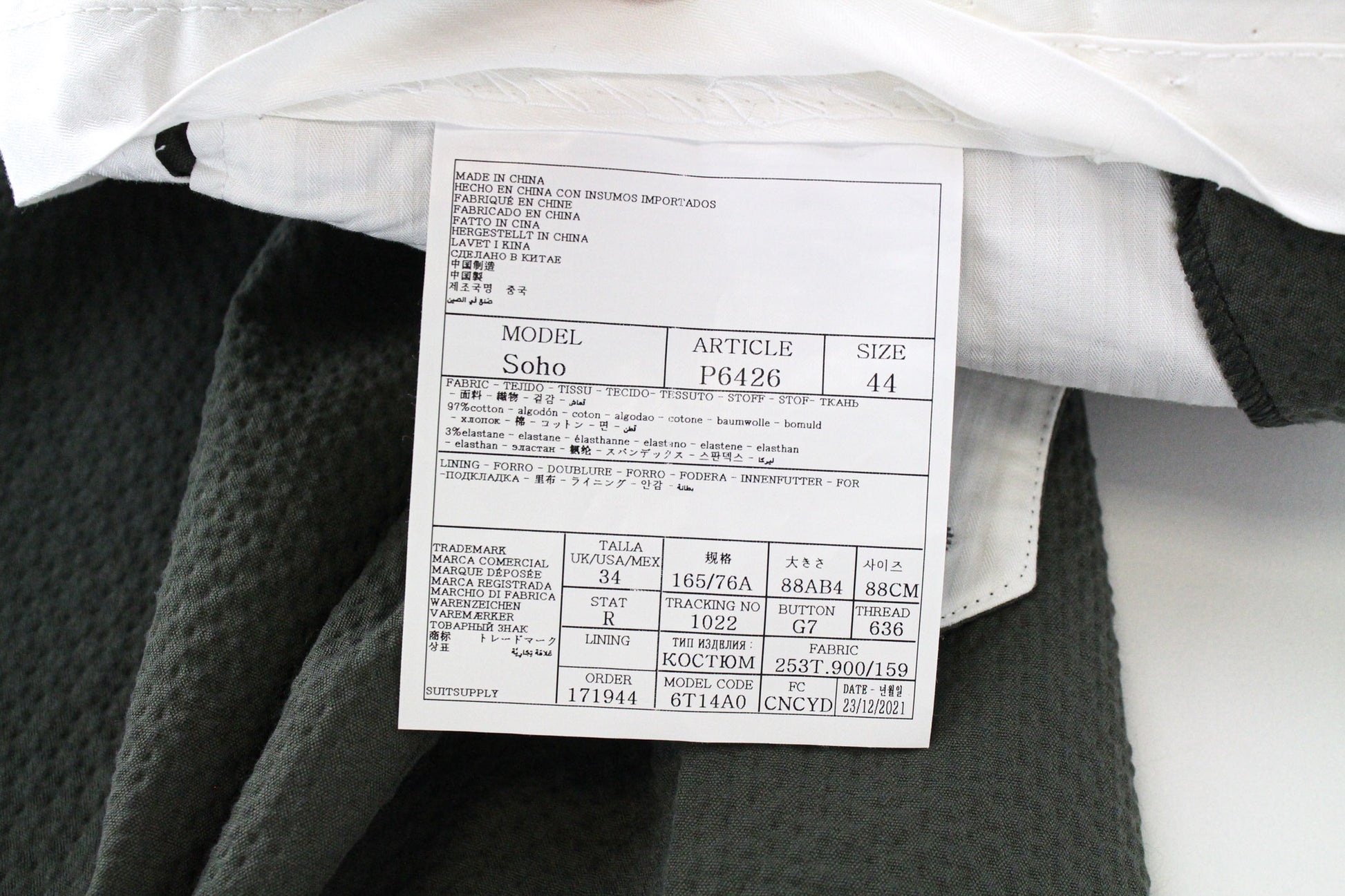 SUITSUPPLY Havana Patch Men's Suit UK34R Green Slim 2-Piece Cotton Mix Stretch