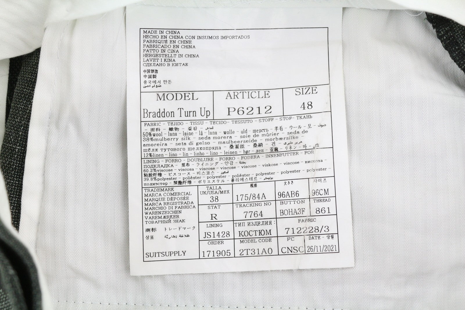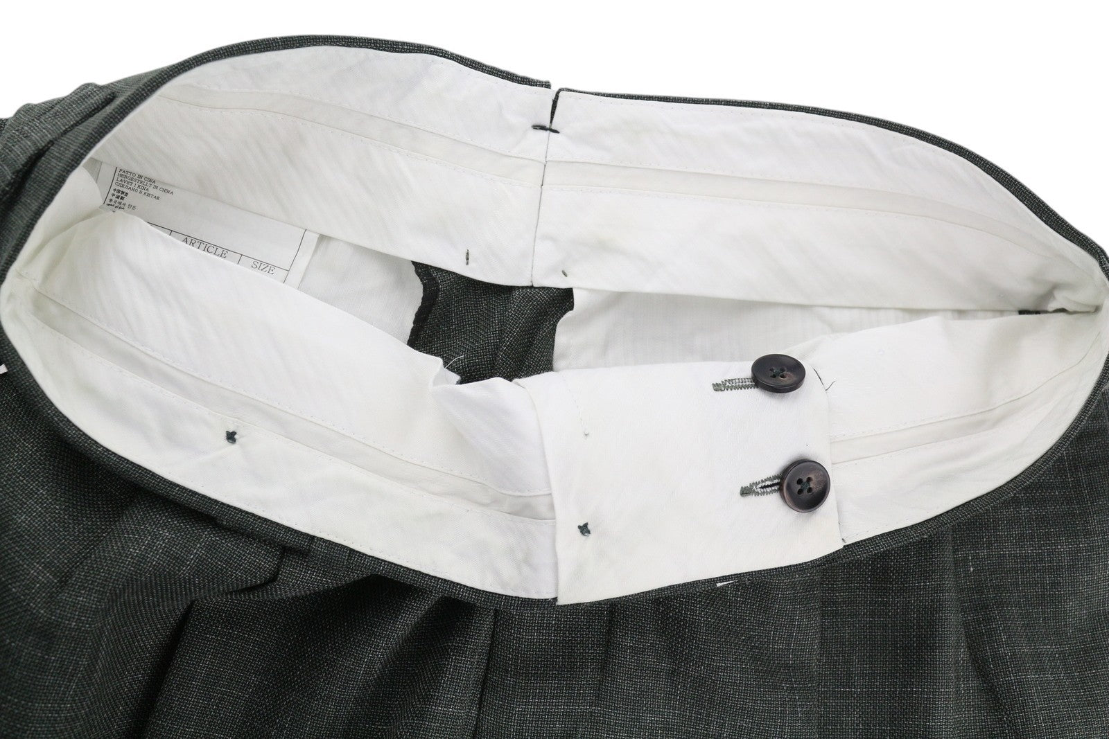 CONDITION: One sleeve button slightly split. Small stains inside the trousers waist. Please see added photos.