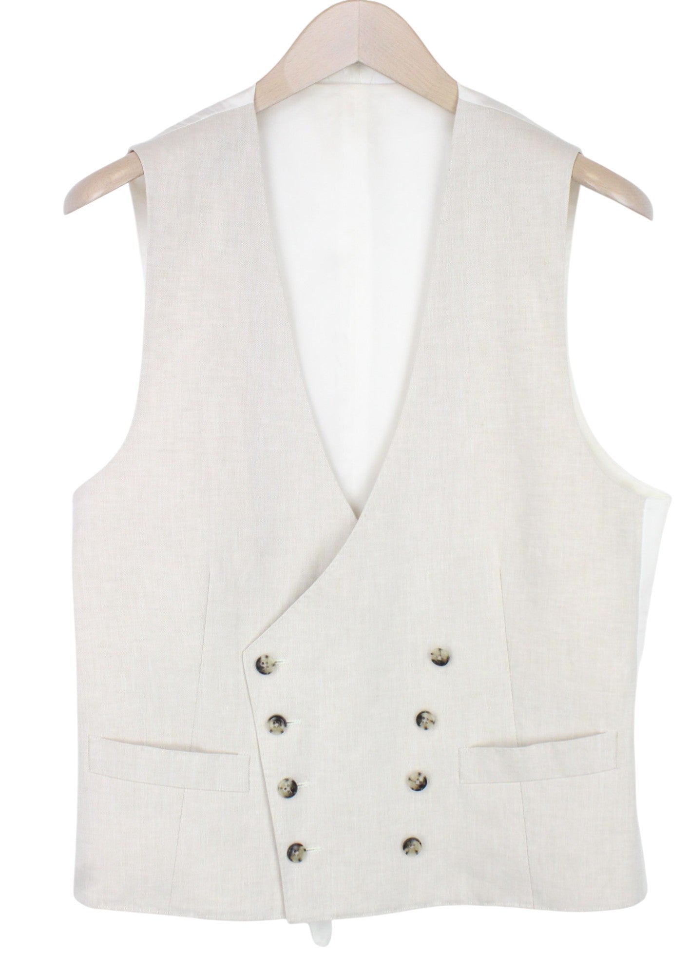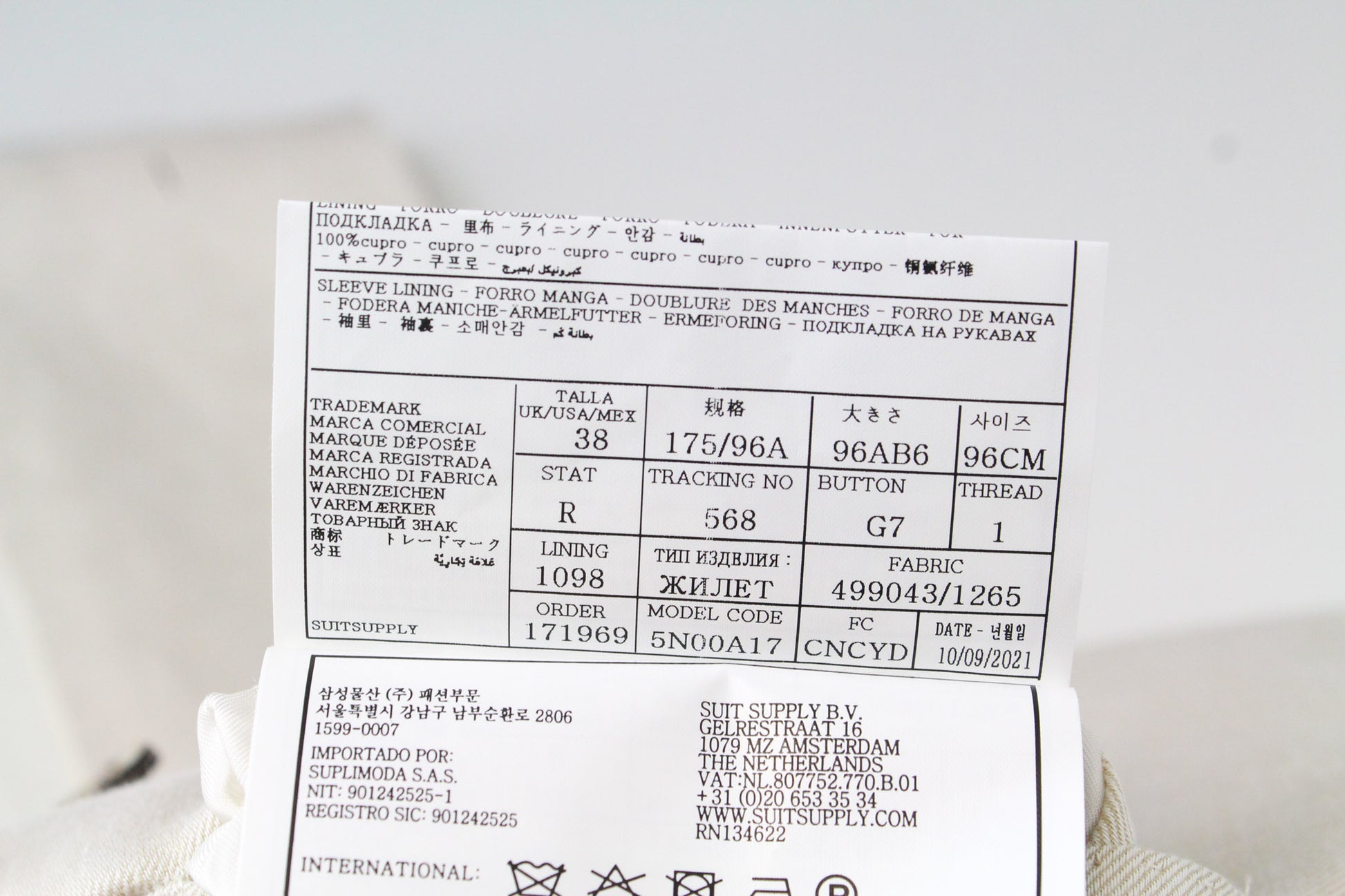 SUITSUPPLY Havana Suit UK38R Beige Melange 3-Piece Linen Cotton Slim Fit Men