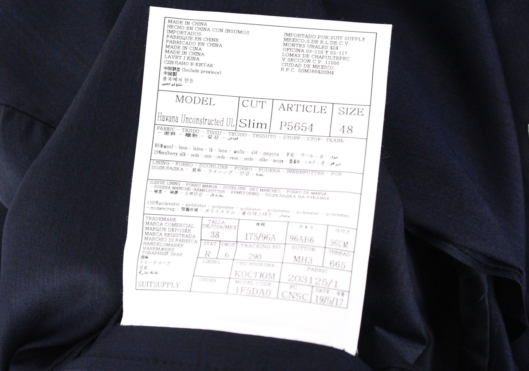 SUITSUPPLY Havana Suit UK38R Men's Navy Slim 2Pc Wool Silk Blend Melange