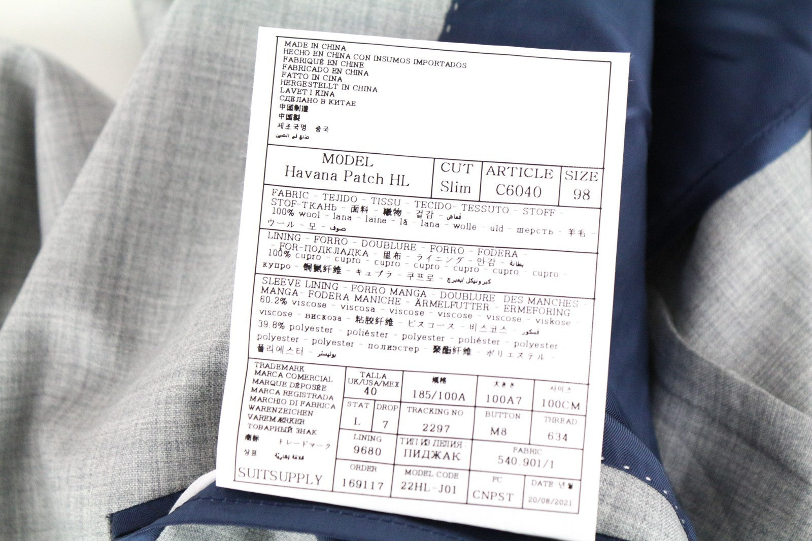SUITSUPPLY Havana Suit UK40L Grey Melange Wool S120s 2Pc Slim Patch Style