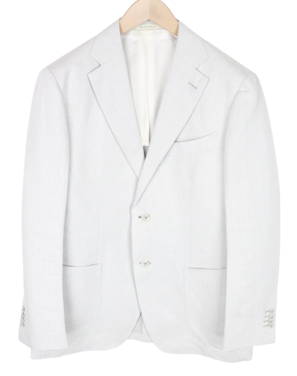 SUITSUPPLY Havana Suit UK40S Grey Slim Linen Cotton Melange 2-Piece Patch Style