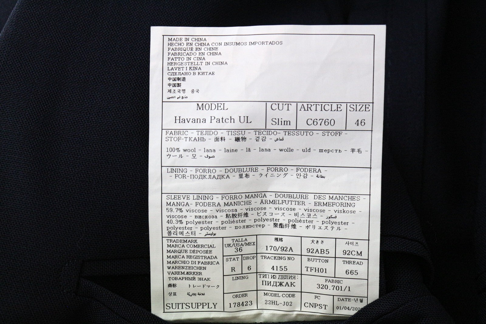 SUITSUPPLY Havana Traveller Men's Suit 36R Blue Wool Slim Classic 2Pc Unlined