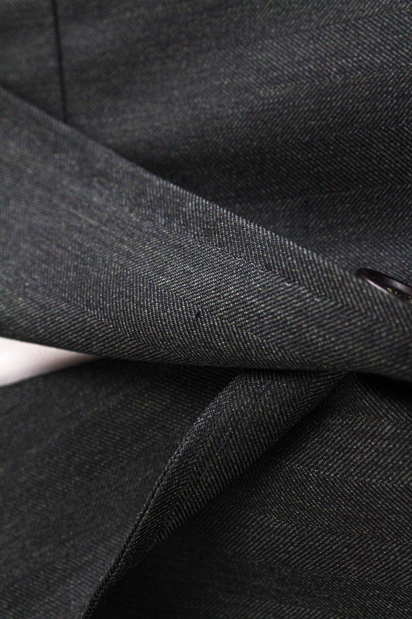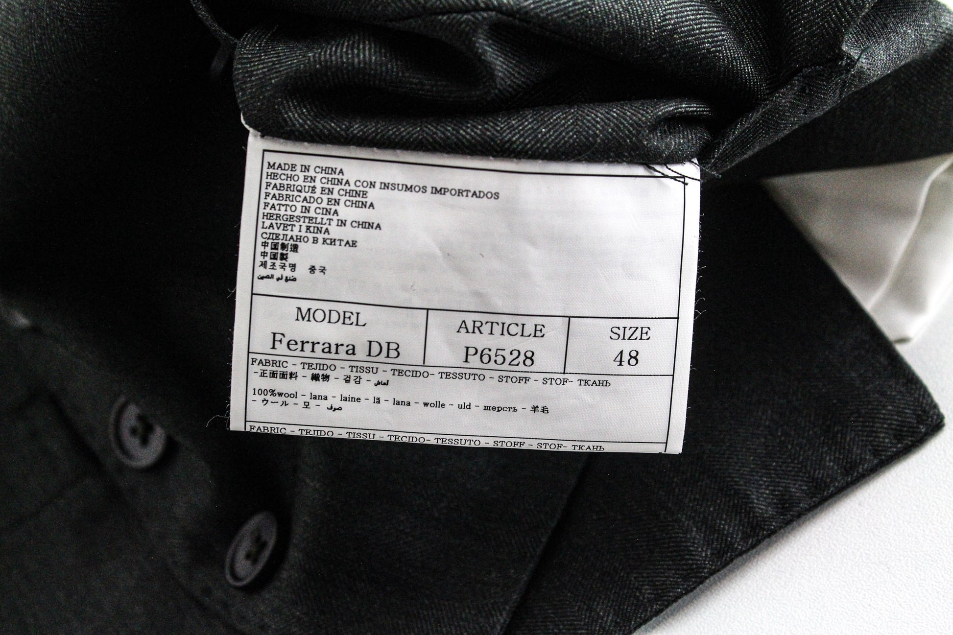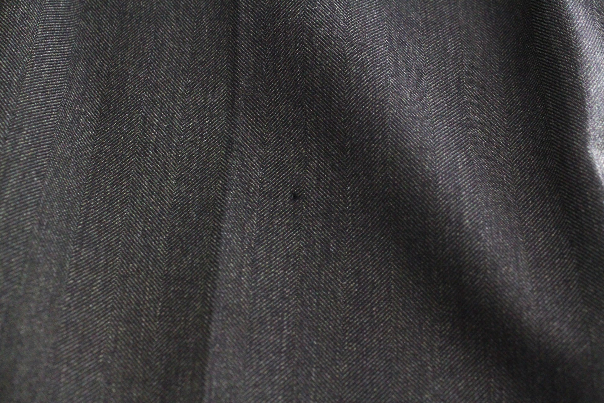 Condition: Used. Stained waistline on the inside. Pulled threads on the lapel and right leg at the back. Please see added photos.