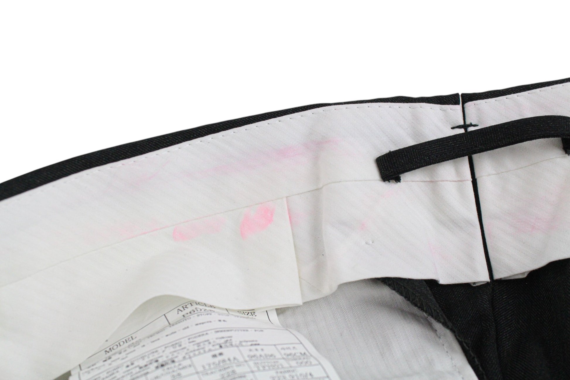 Used. Stained waistline on the inside. Pulled threads on the lapel and right leg at the back. Please see added photos.
