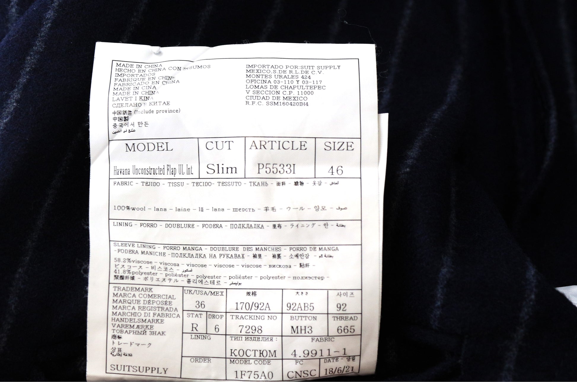 SUITSUPPLY Havana UK36R Suit 2Pc Blue Wool Slim Men's Striped Unlined