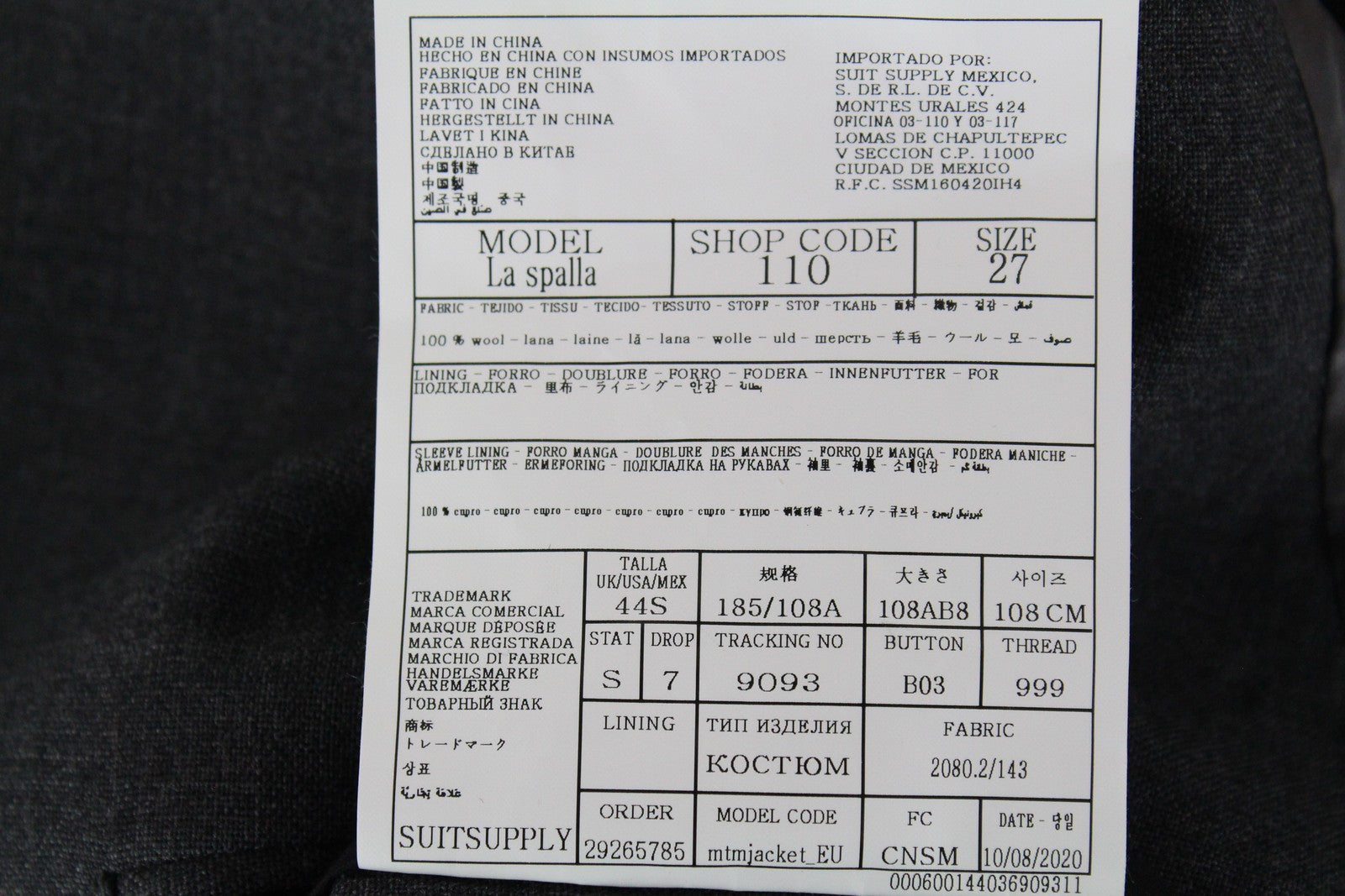 SUITSUPPLY La Spalla Men Suit UK44S Unlined Single-Breasted Grey Wool 2 Piece