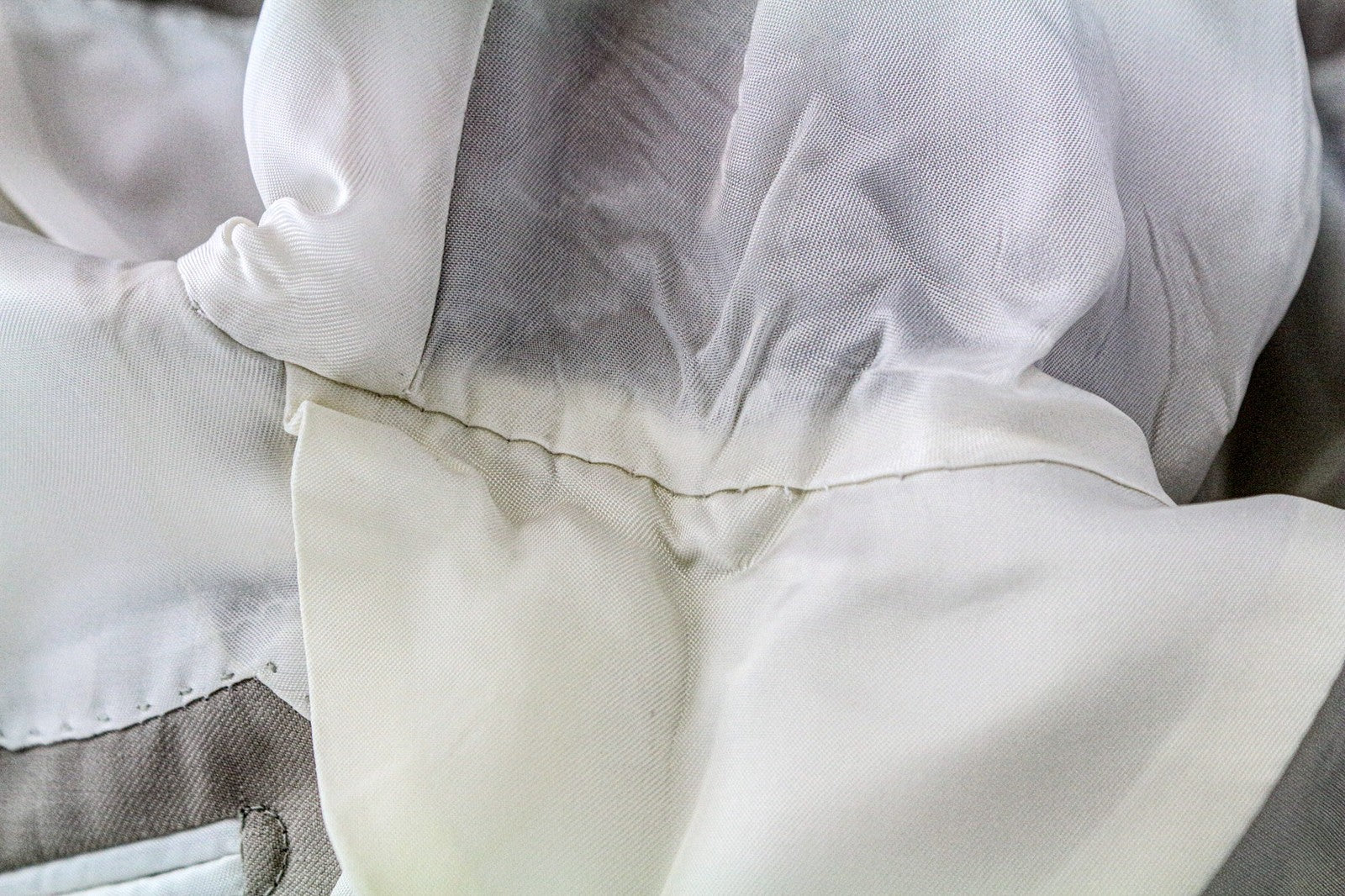 CONDITION: Used. Stained around armpit area. Pay attention to personal embroidery. Please see added photos.