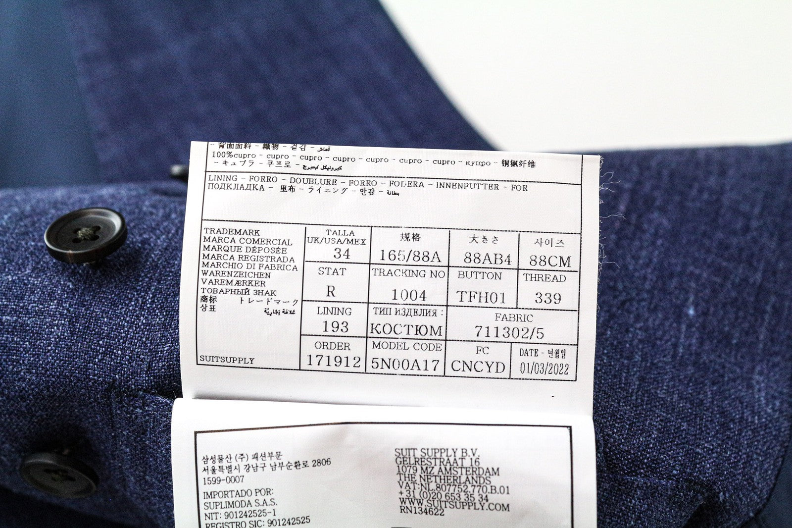 SUITSUPPLY La Spalla Men's Blazer UK32R Slim Blue Wool Silk Linen Melange
