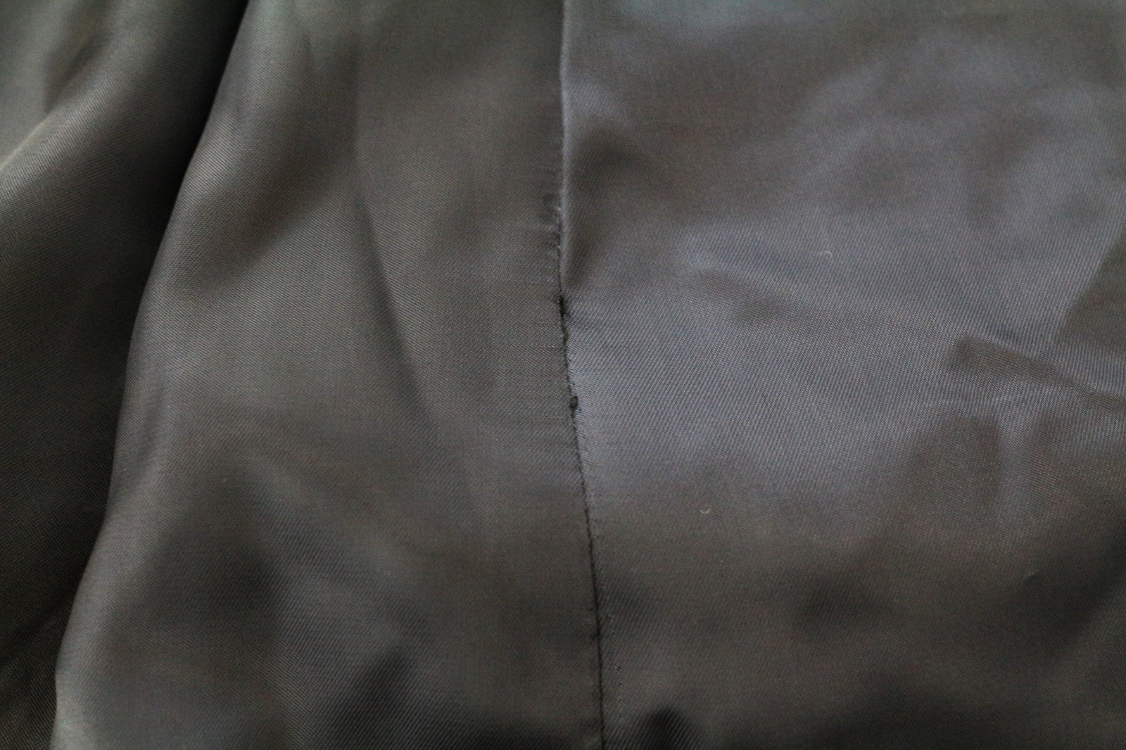CONDITION: Used. Mended back. Pulled threads and tears in the lining. Small tears in the vents .Pay attention to personal embroidery. Please see added photos.