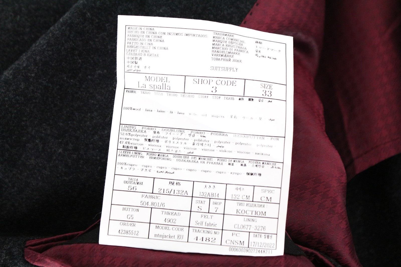 SUITSUPPLY La Spalla Men's Blazer UK56S Grey Pure Wool Classic Single Breasted