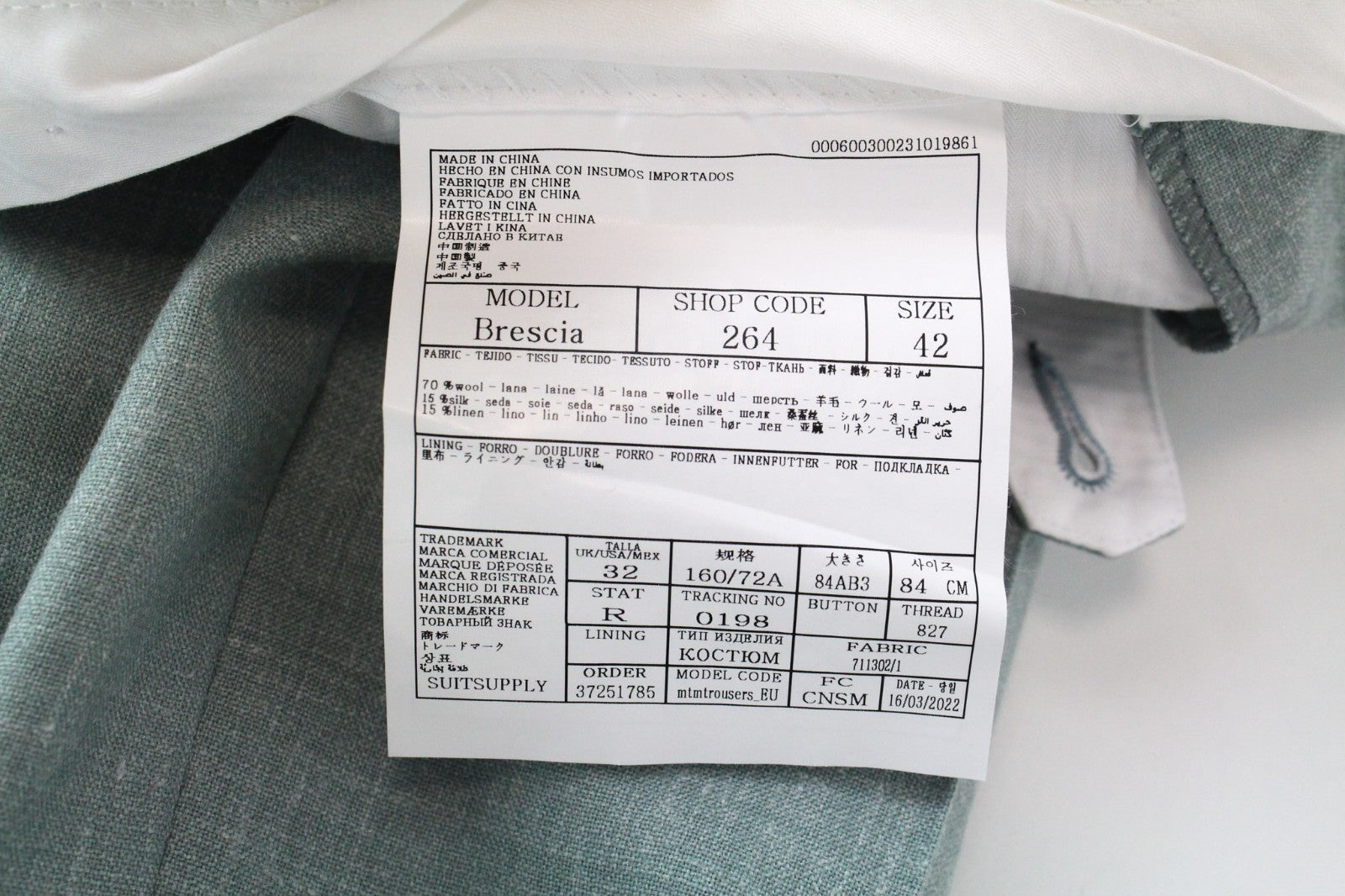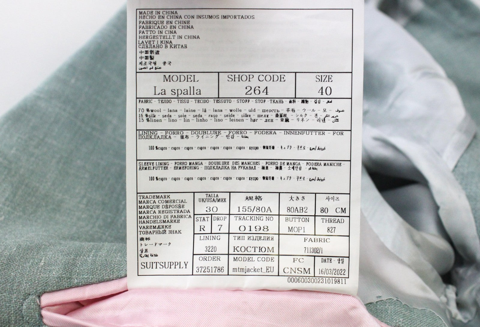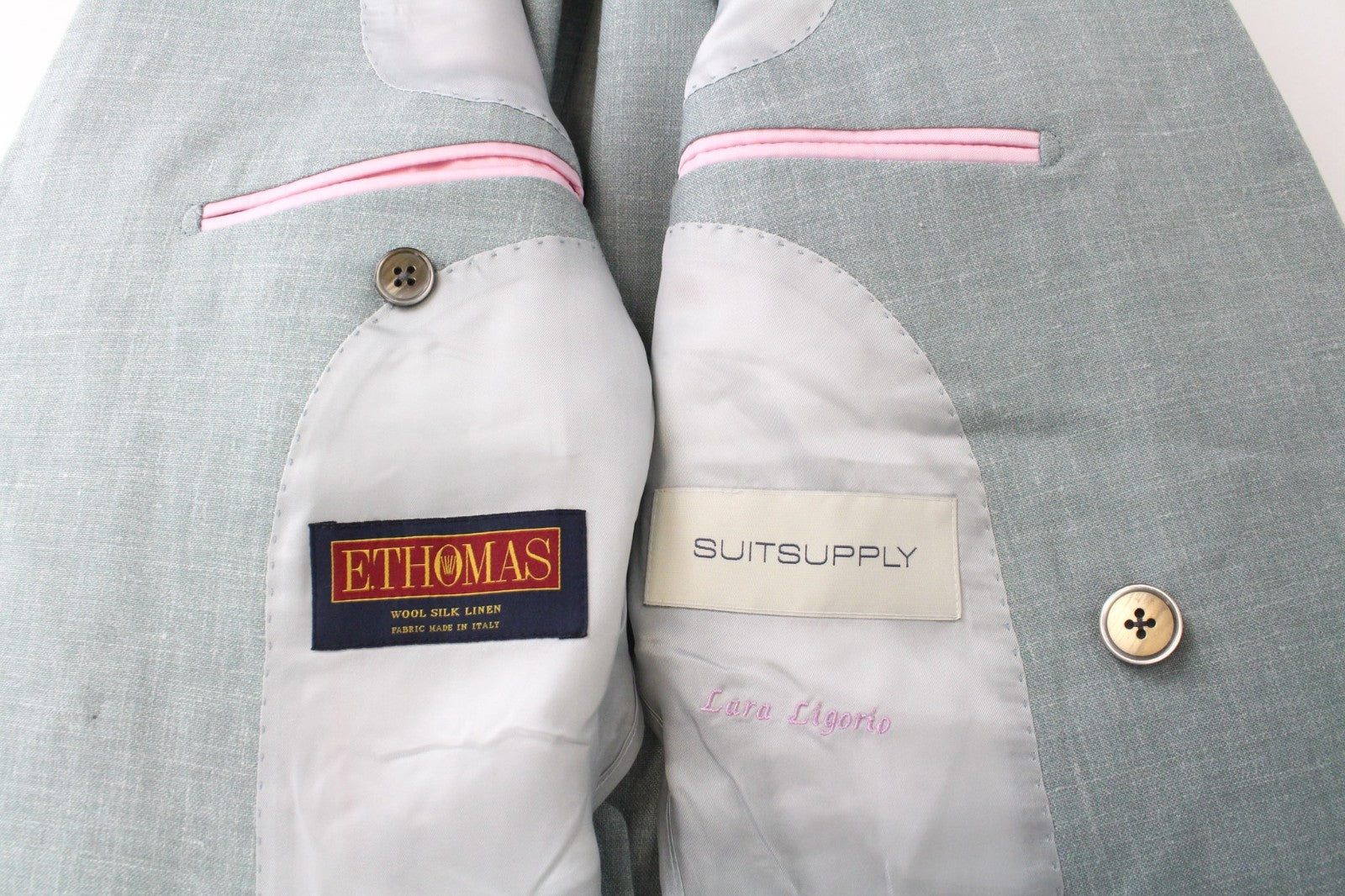 SUITSUPPLY La Spalla Men's Suit UK30R Double-Breasted Green Wool Silk Linen Set