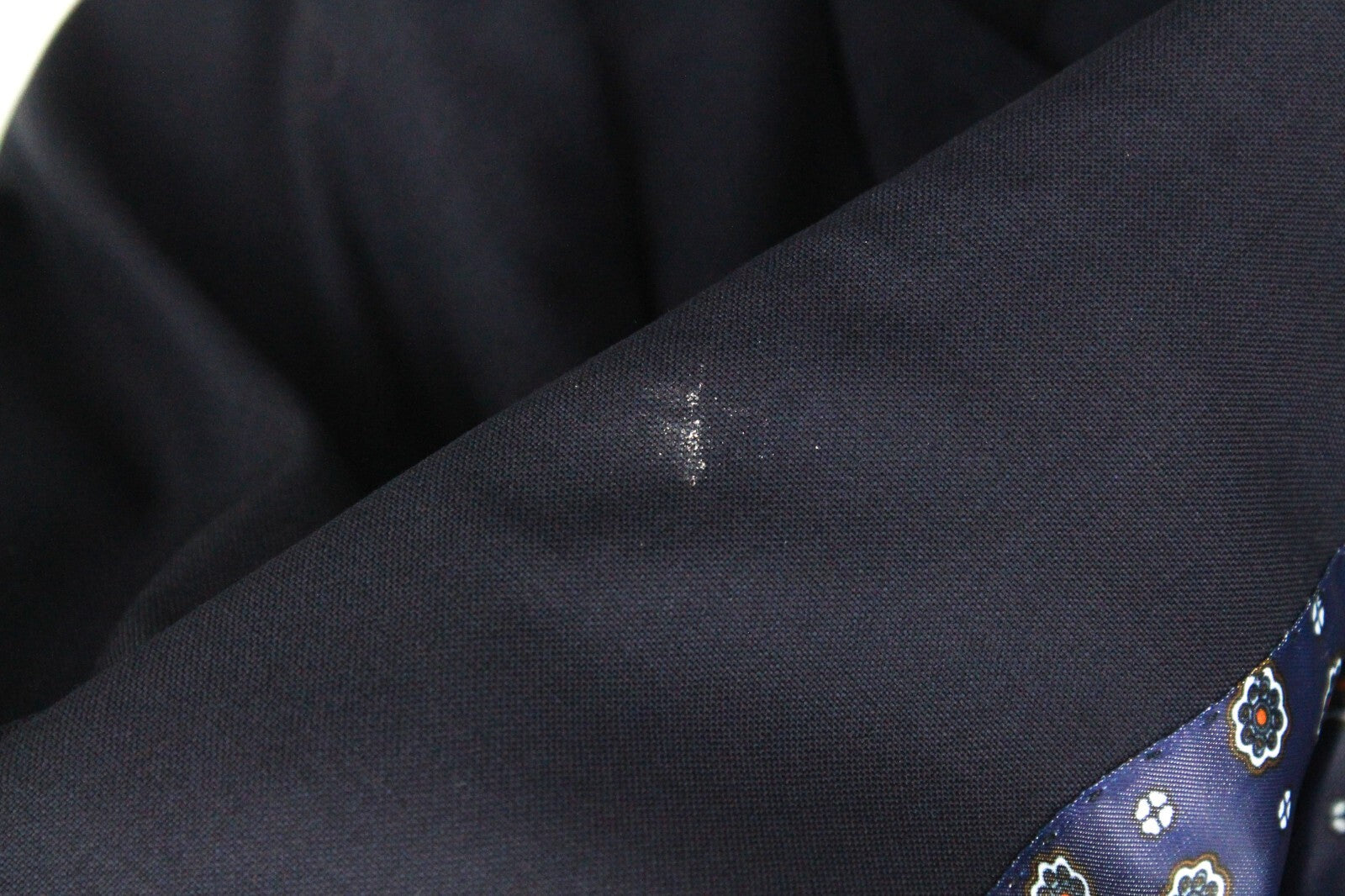 Used. Mended hems and inner trousers' lining around the crotch area. Pulled thread on the blazer's back,stain on the inside. Pay attention to personal embroidery. Please see added photos.