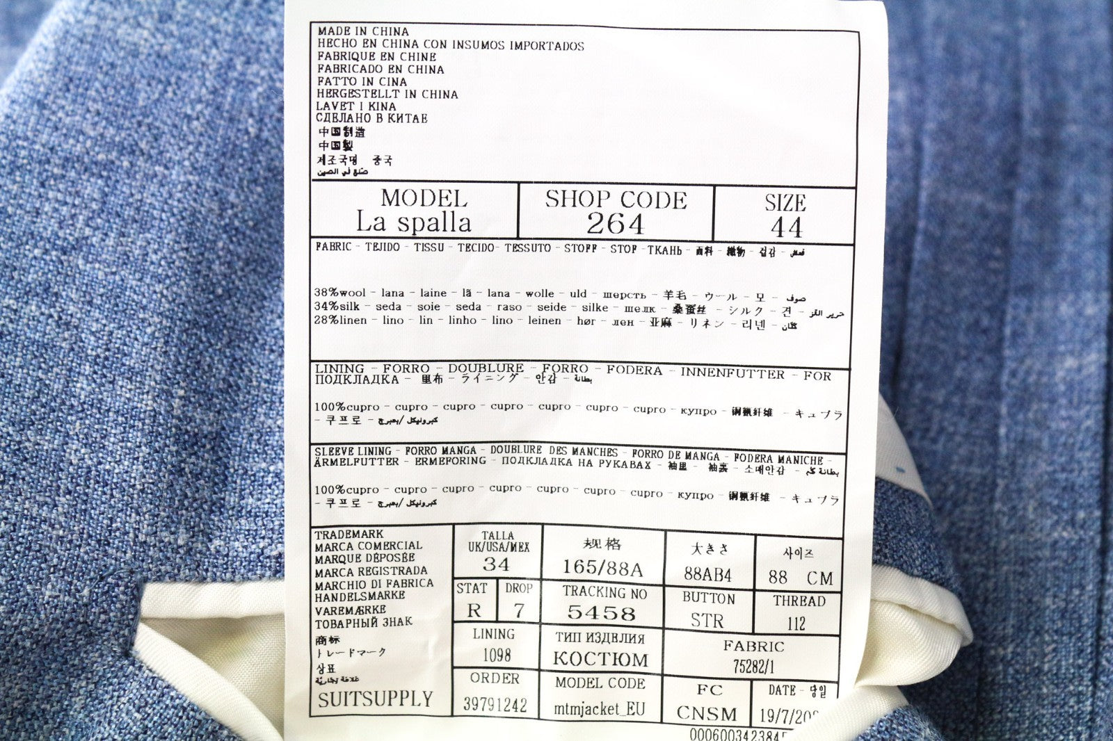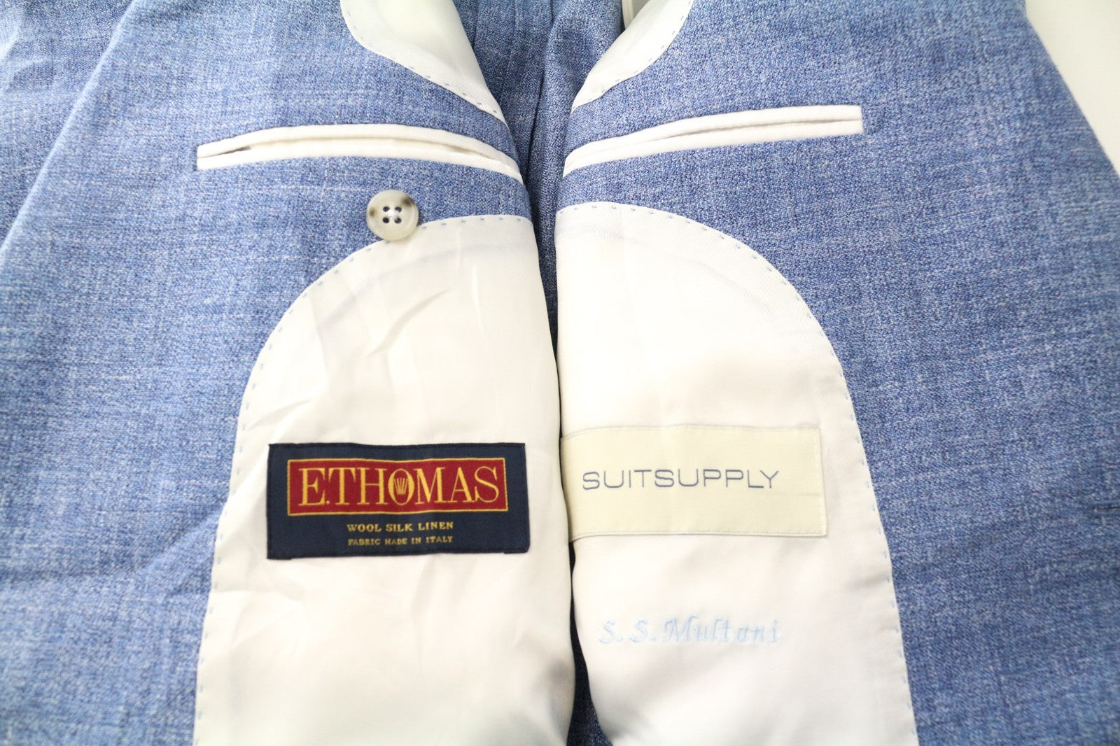 SUITSUPPLY La Spalla Men's Suit UK34R Peak Lapel Blue Wool Silk Linen 2 Piece