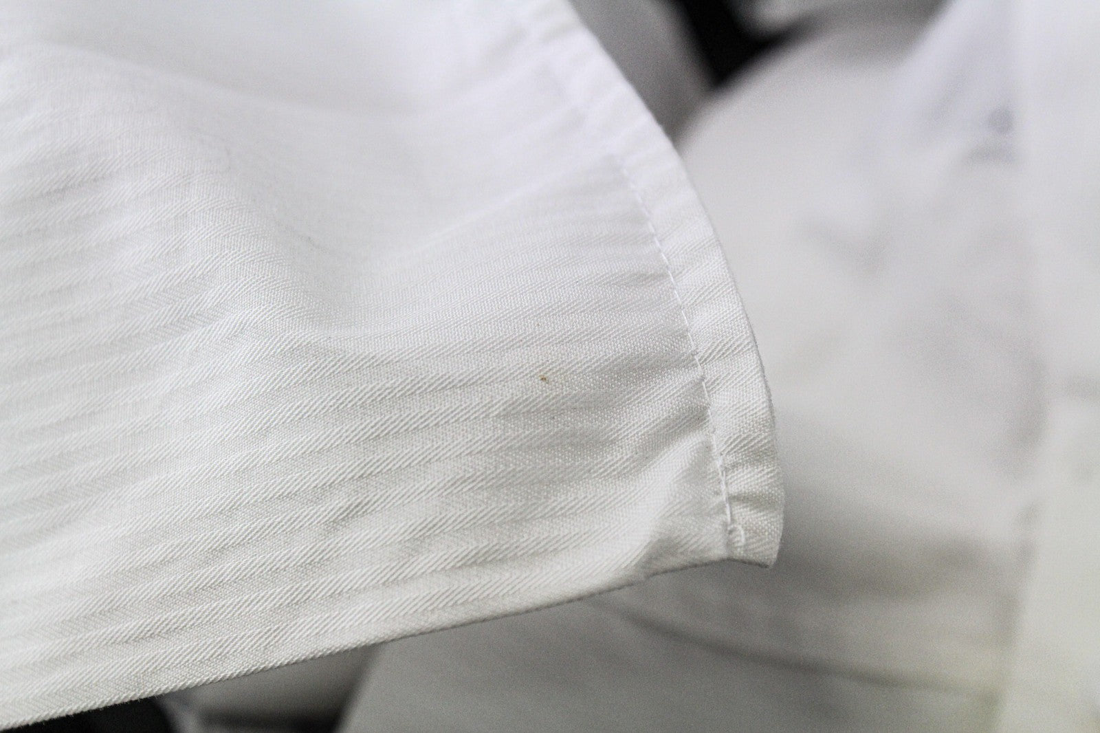 Used. Stains all over the trousers. Discoloration spot on the right leg. Please see added photos.