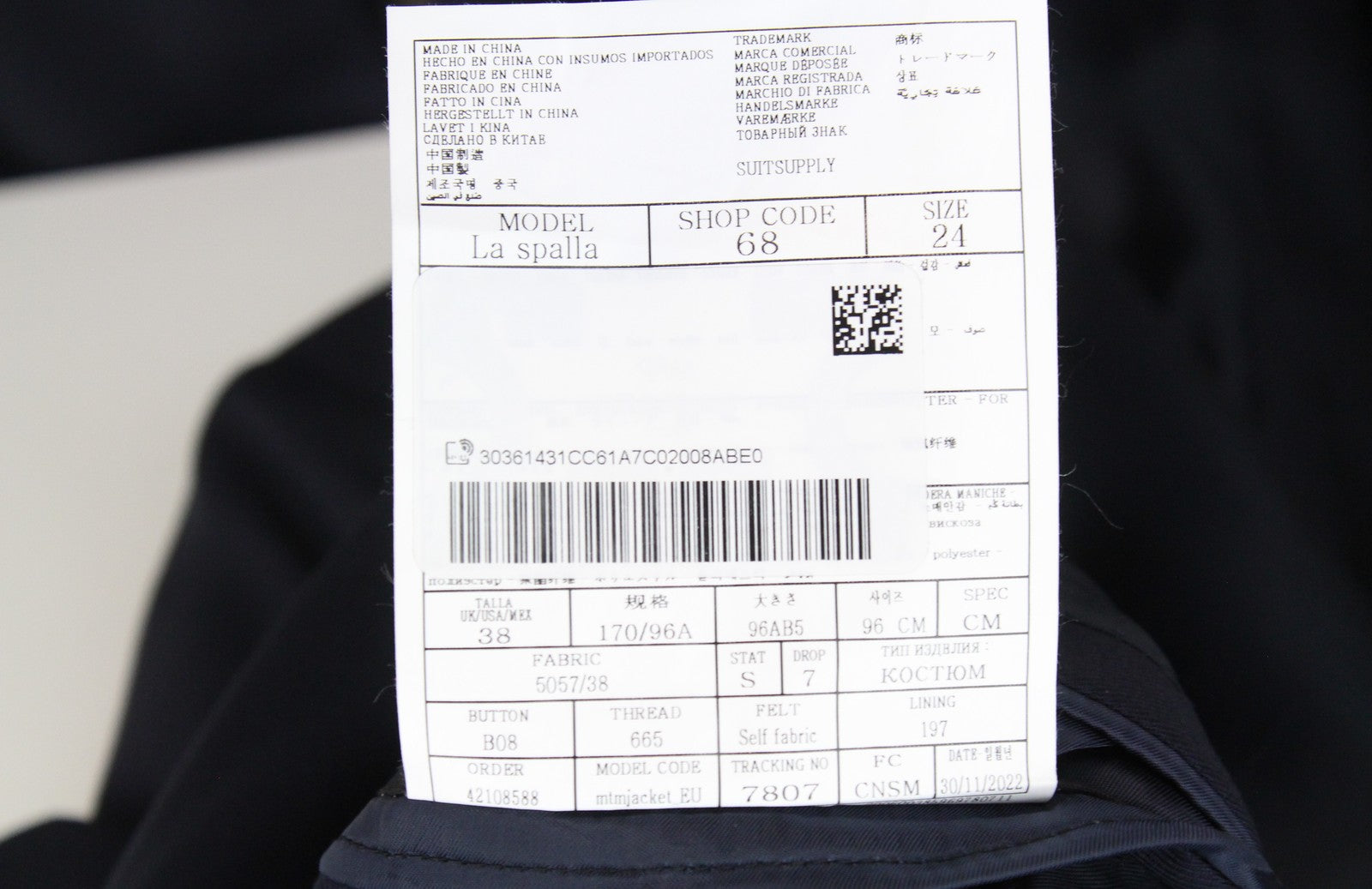 SUITSUPPLY La Spalla Men's Suit UK38S Blue Slim Fit S110s Wool Melange 2-Piece
