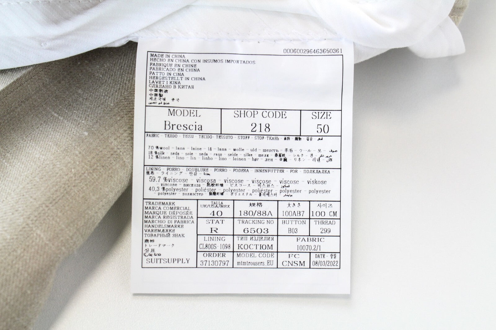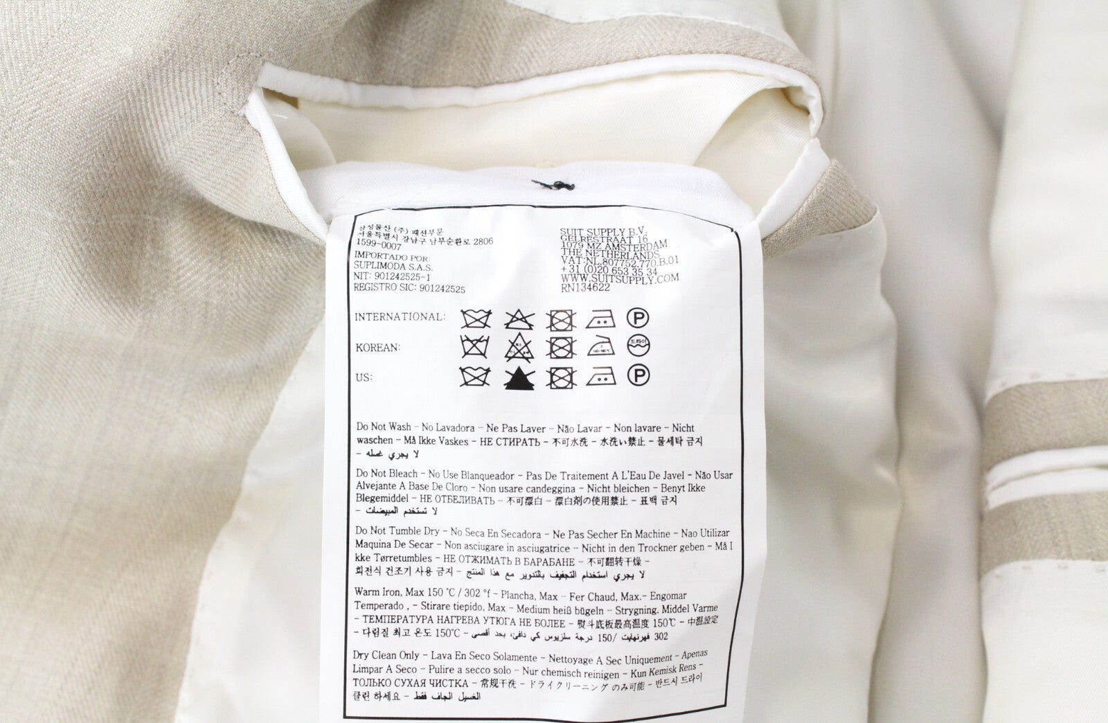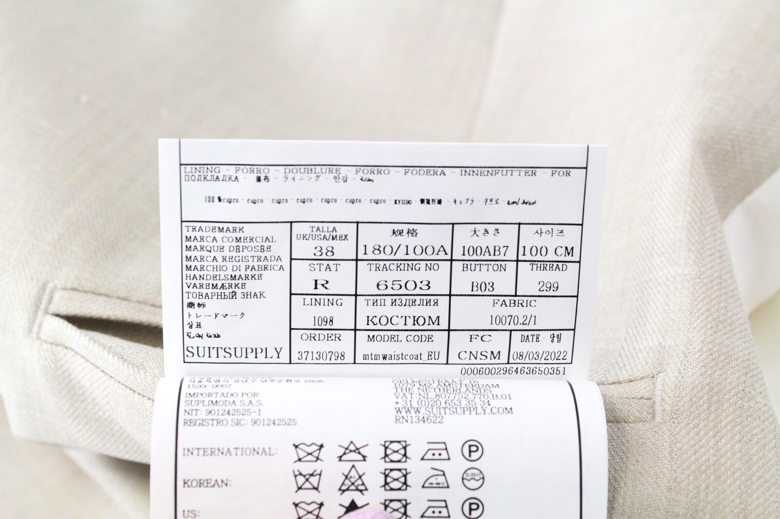 SUITSUPPLY La Spalla Mens Suit UK40R Beige 3 Pc Wool Silk Linen Herringbone