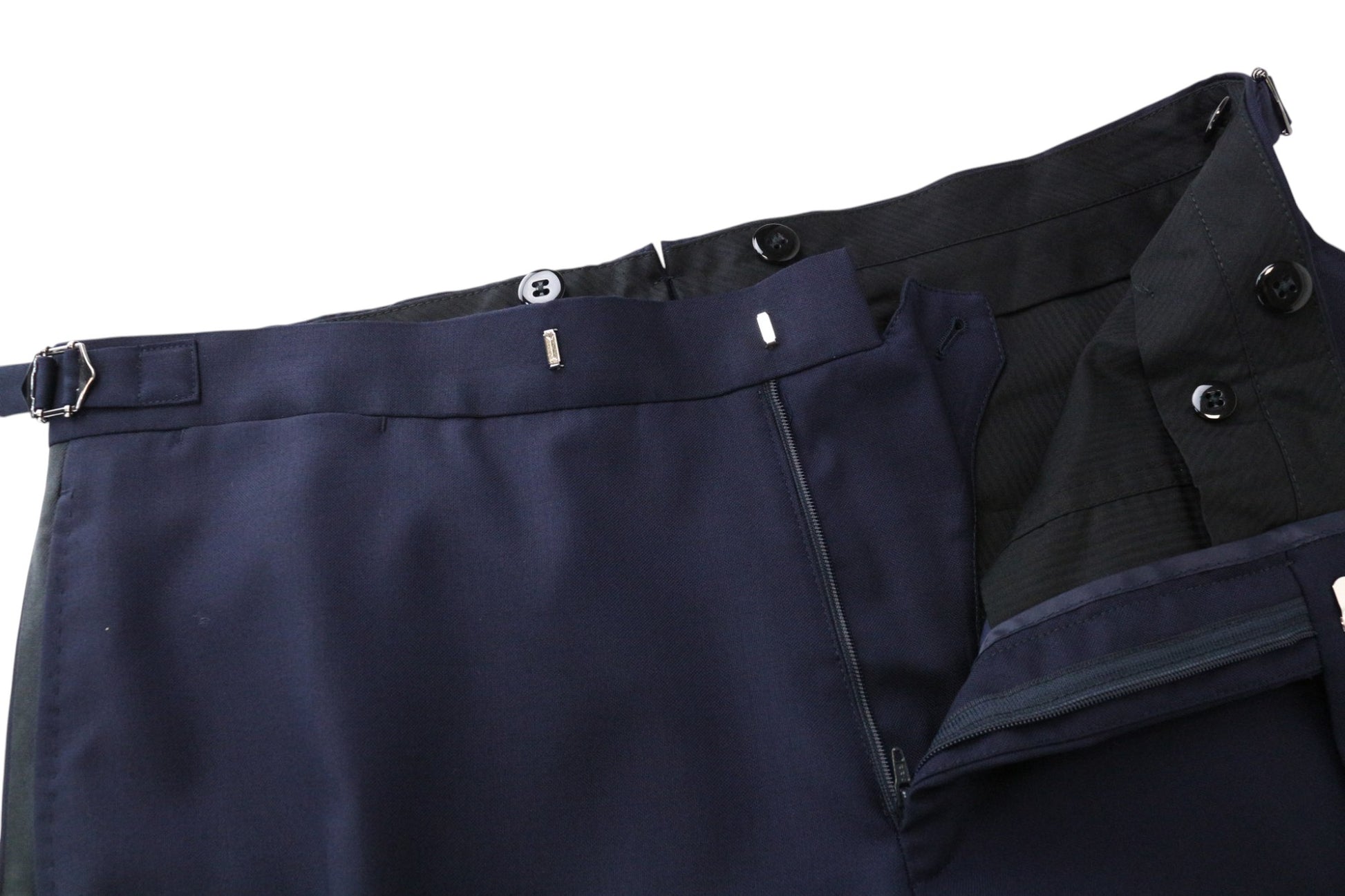CONDITION: Used. Pay attention to personal embroidery. Stained waistcoat's back. Tailored trousers' length. Please see added photos.