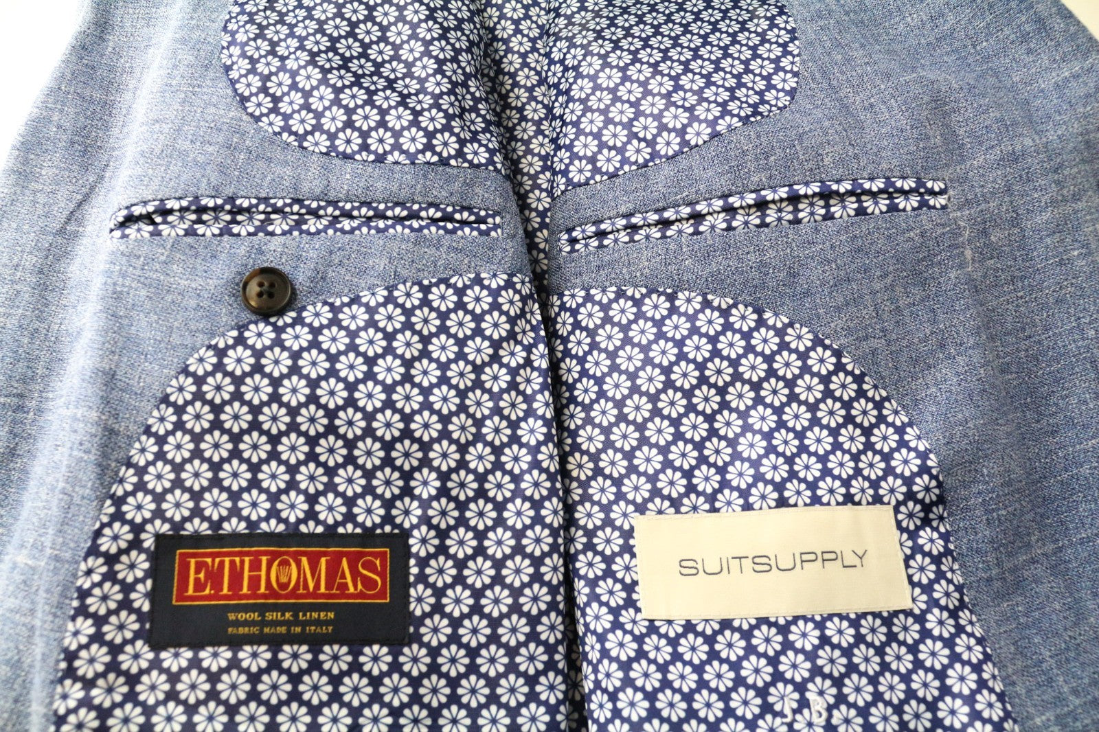 SUITSUPPLY La Spalla Men's Suit UK46R Blue 2 Piece Linen Wool Silk Blend Outfit