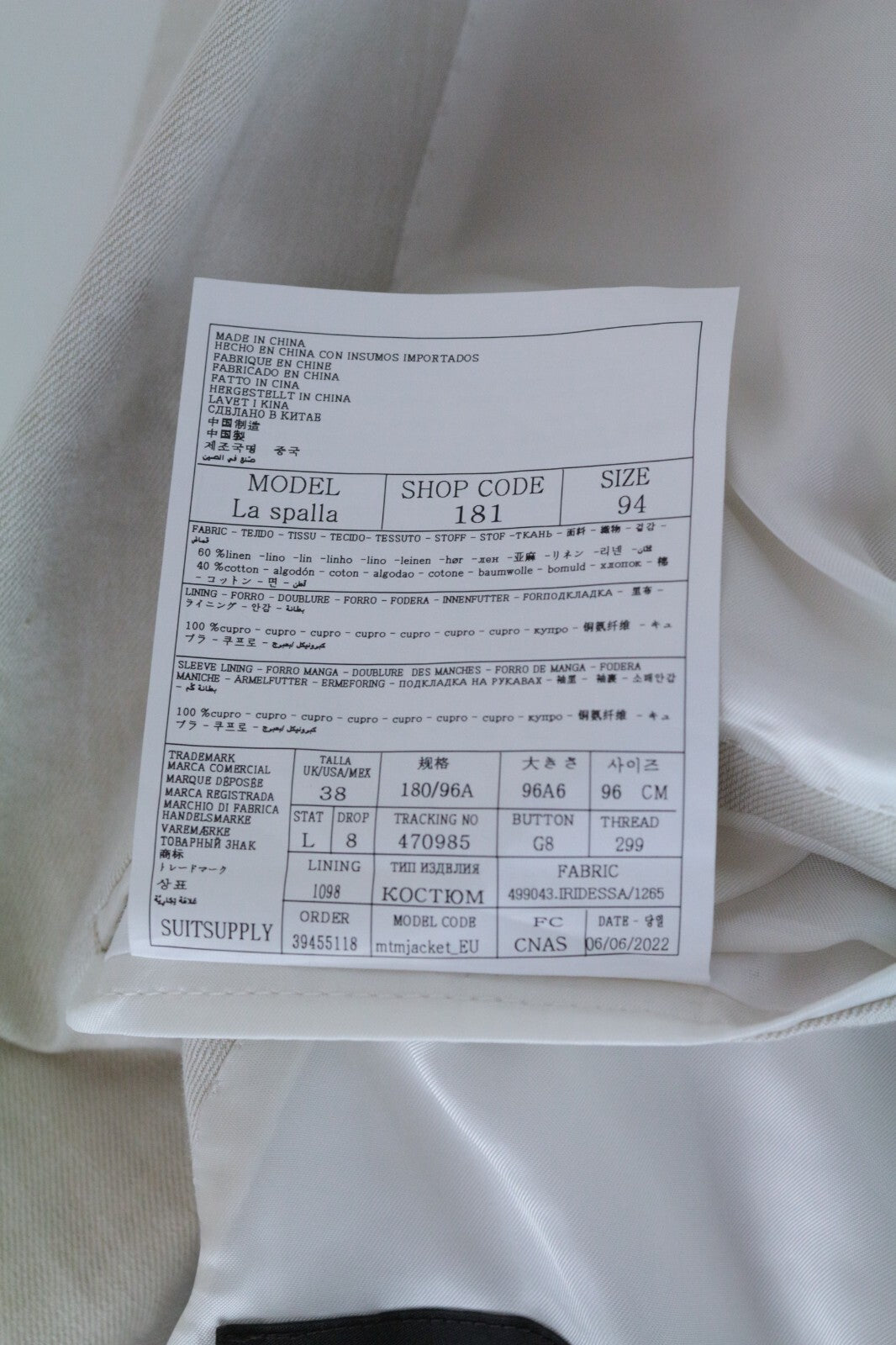 SUITSUPPLY La Spalla Men's UK38L Beige Cotton Linen Blend 2-Piece Suit