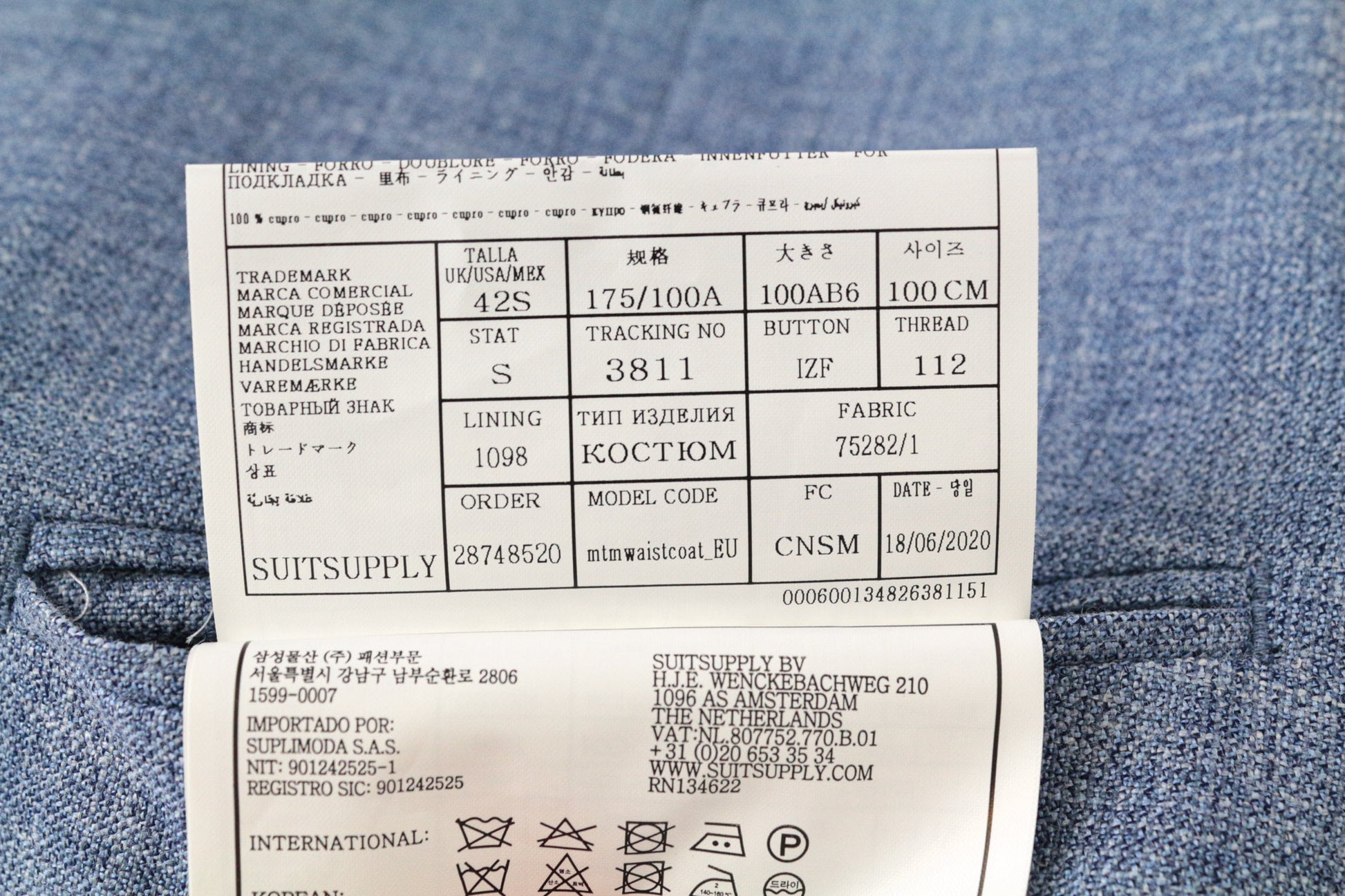 SUITSUPPLY La Spalla Men's UK40S Suit Blue Slim 3-Piece Wool Silk Melange