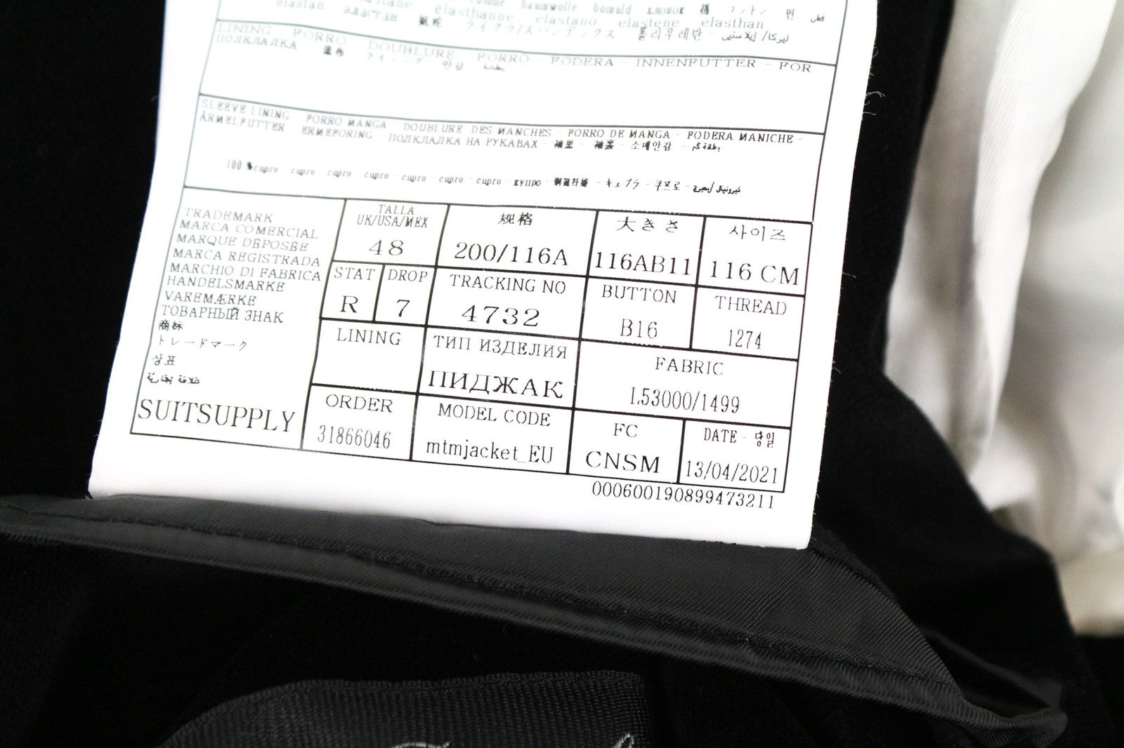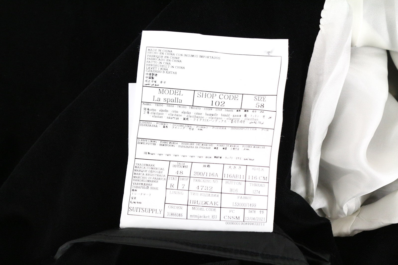 SUITSUPPLY La Spalla Men's UK48R Black Cotton Stretch Unlined Velvet Blazer