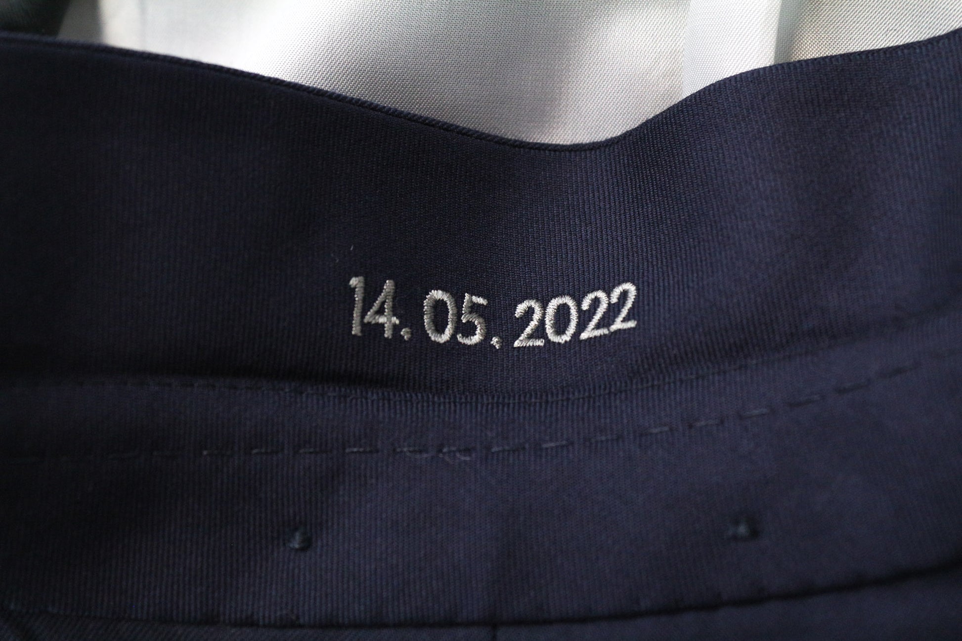 Condition: Used. Mended hems and inner trousers' lining around the crotch area. Small tears in both cuffs. Pay attention to personal embroidery. Please see added photos.