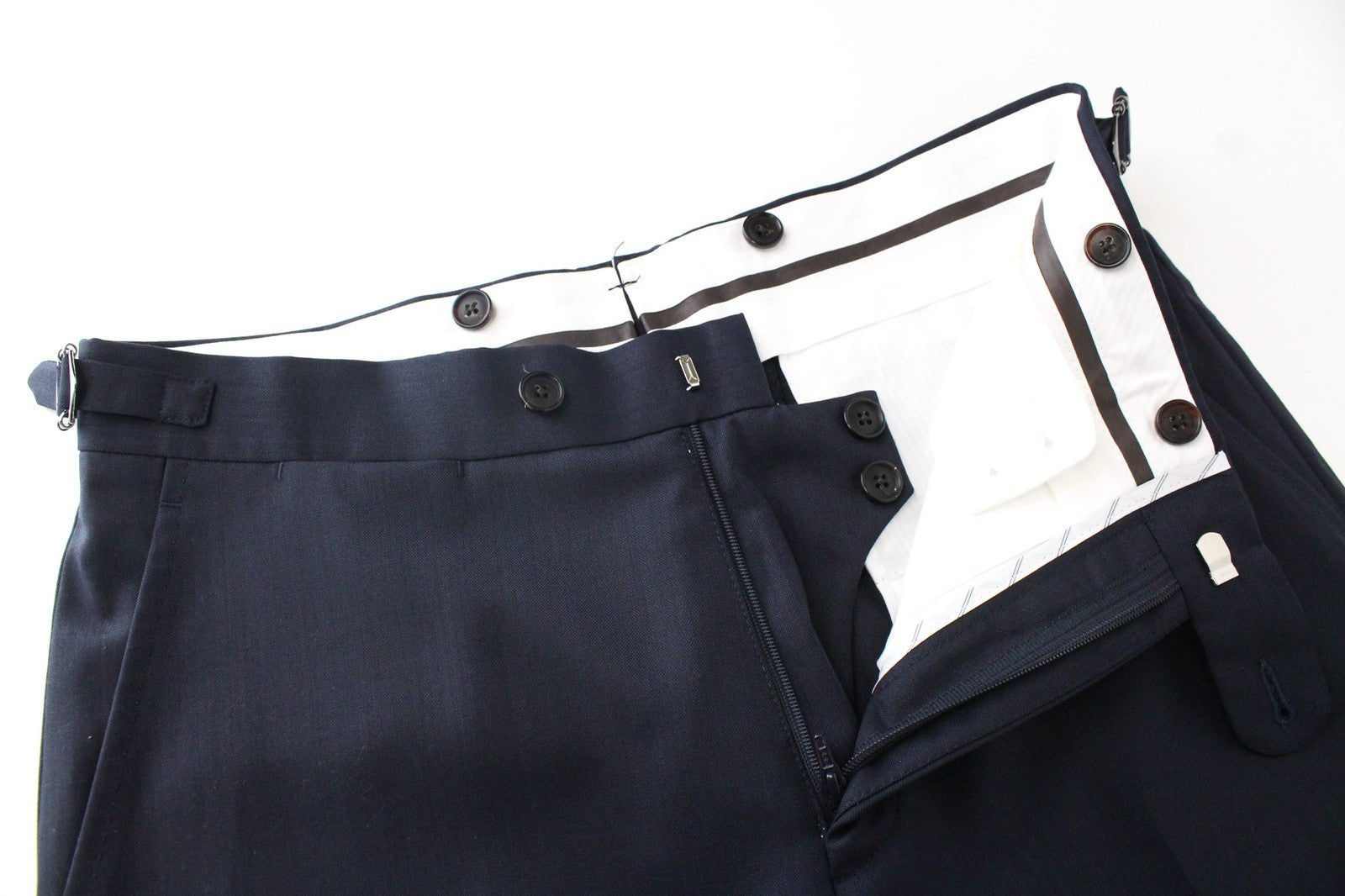 Used. Mended inner trousers' lining around the crotch area, pulled thread on the blazer. Please see added photos.