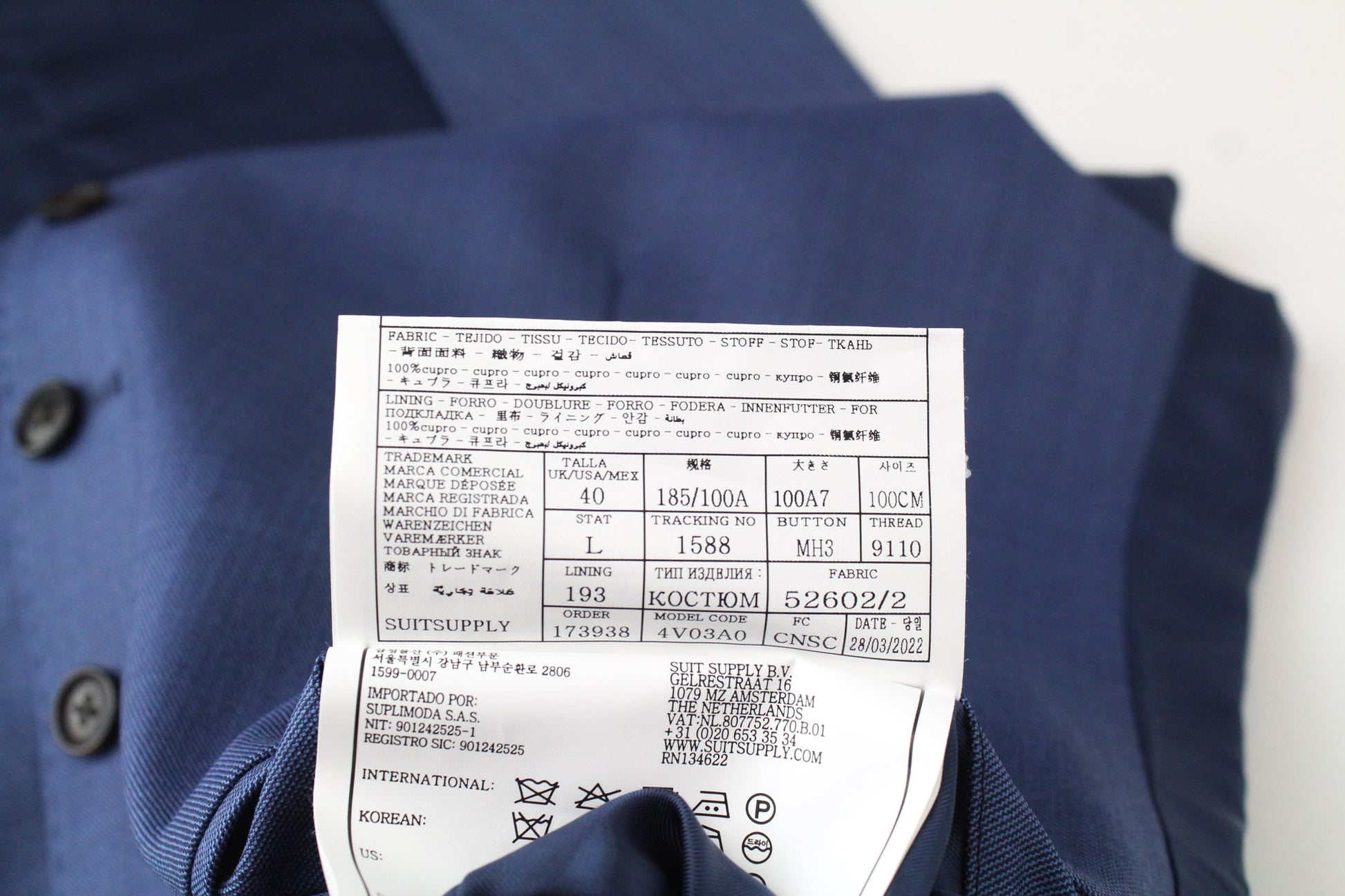 SUITSUPPLY Lazio La Spalla Men's Suit UK40L Slim Blue Wool 3Pc Super 150's