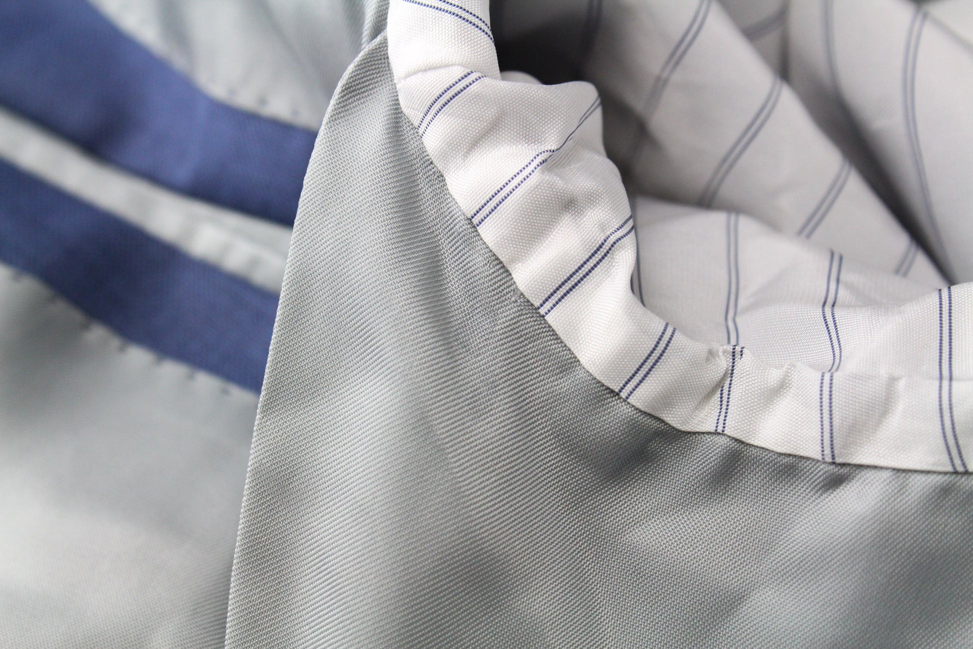 Condition: Used. Stains on the lining of the blazer and trousers. Pulled threads on the blazer's lining. Please see added photos.