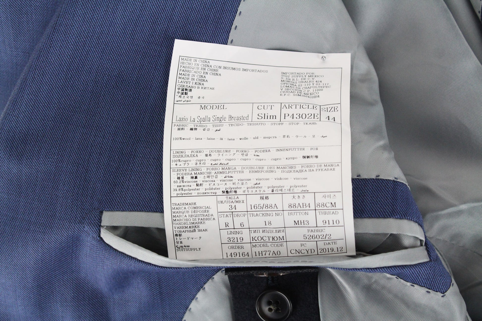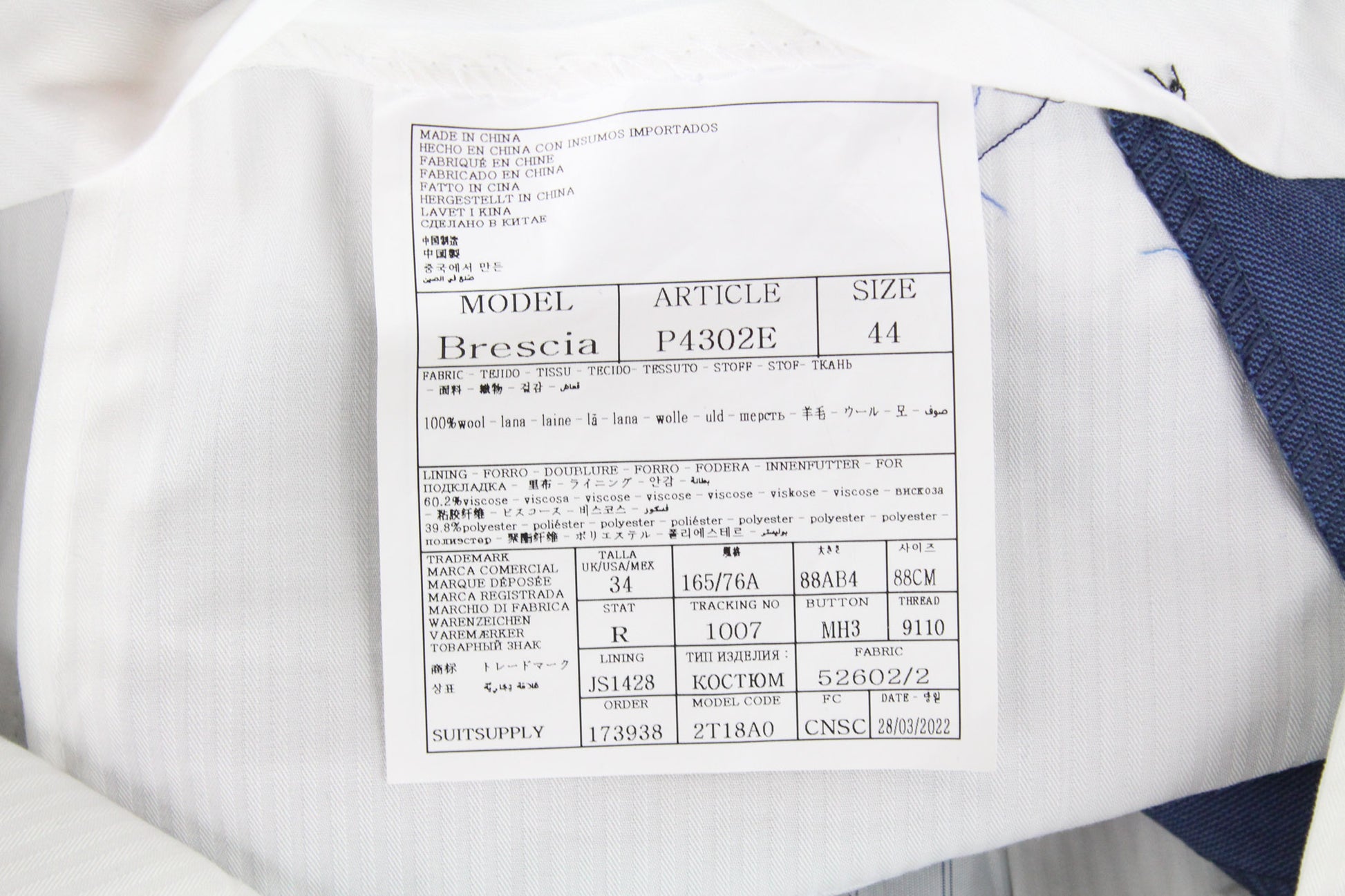 SUITSUPPLY Lazio La Spalla Men's UK34R Blue Slim 3Pc Super 150s Wool Suit