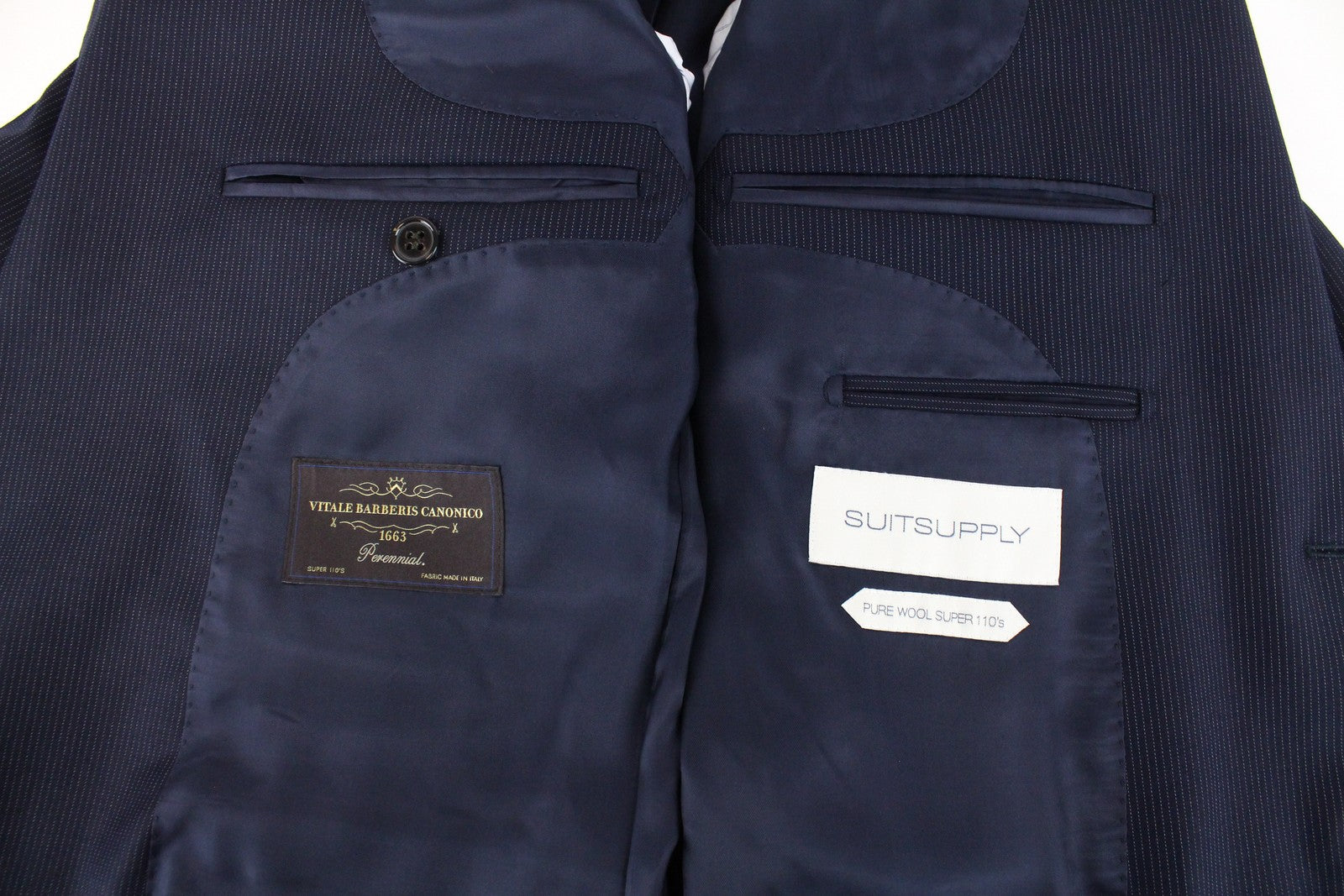 SUITSUPPLY Lazio Men Blazer UK40R Navy Wool Super 110's Slim Striped Lining
