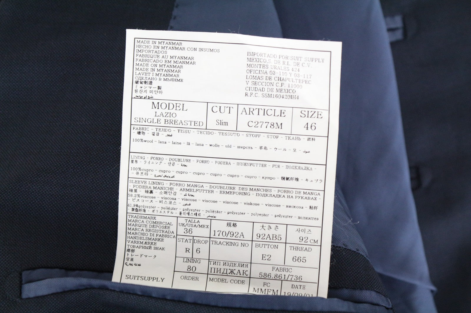 SUITSUPPLY Lazio Men's Blue Wool Slim Suit UK36R Classic Super 110's 2 Piece