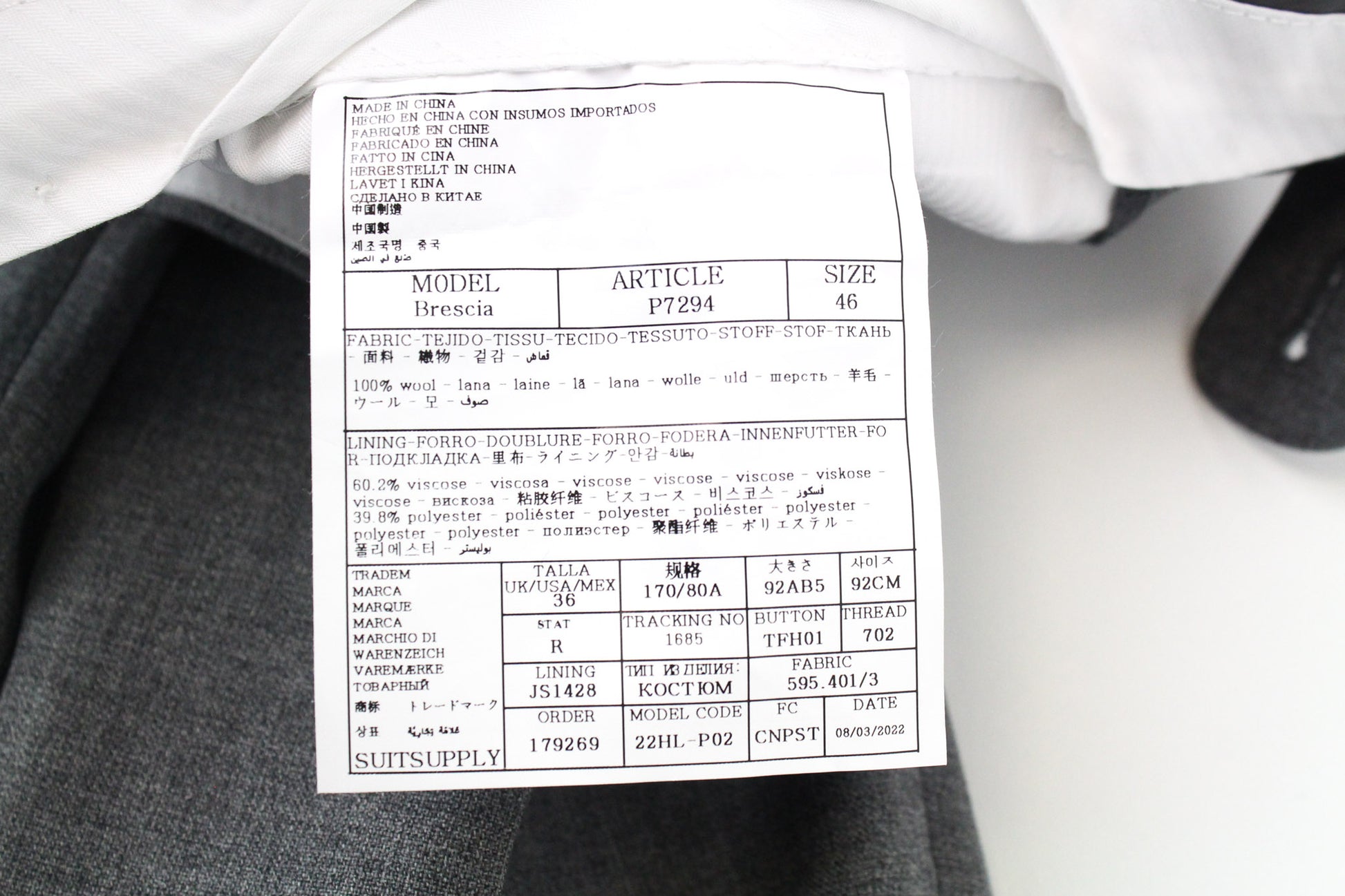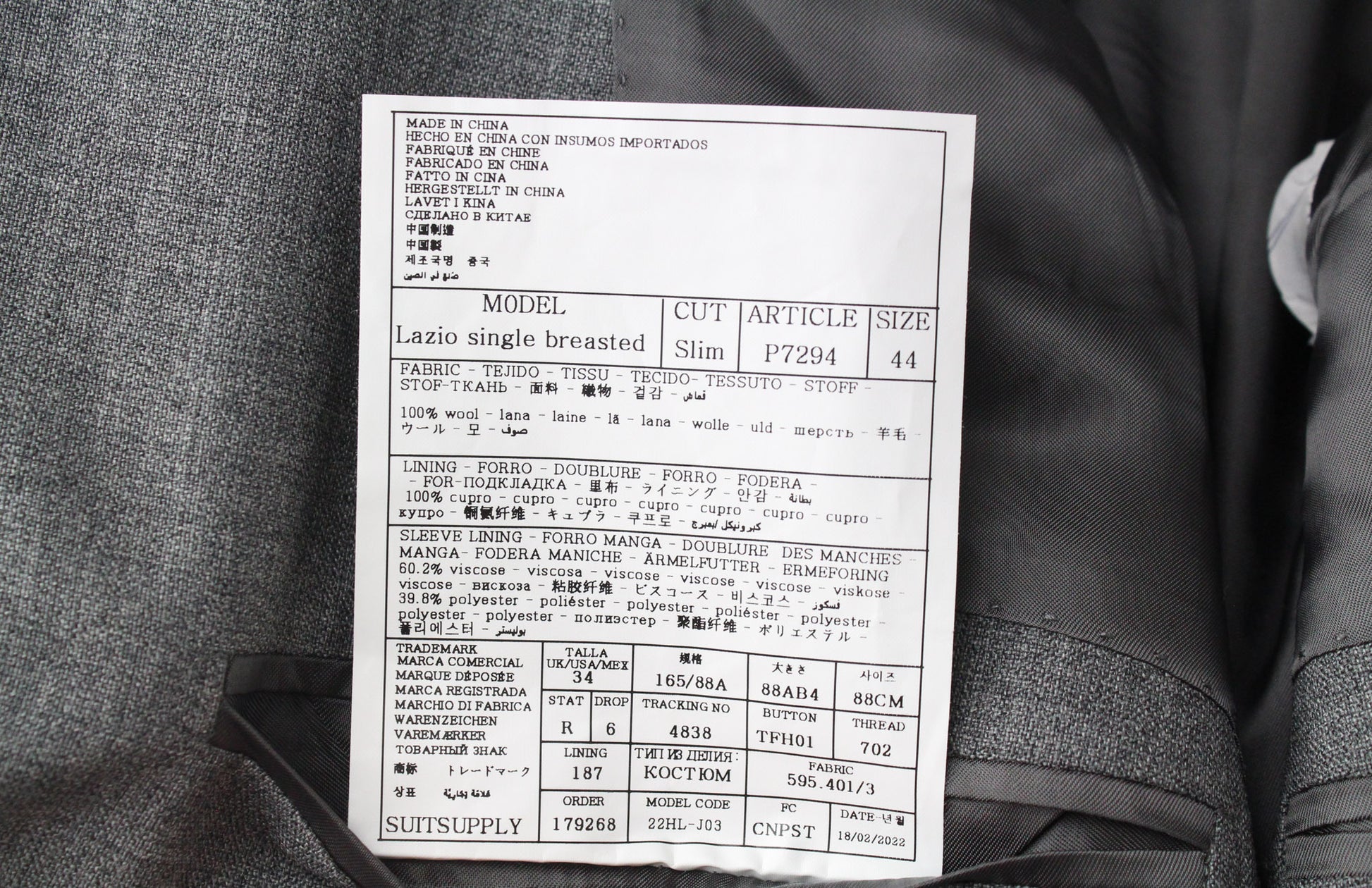 SUITSUPPLY Lazio Men's Suit UK34R Grey Slim Wool 2Pc Tropical Melange