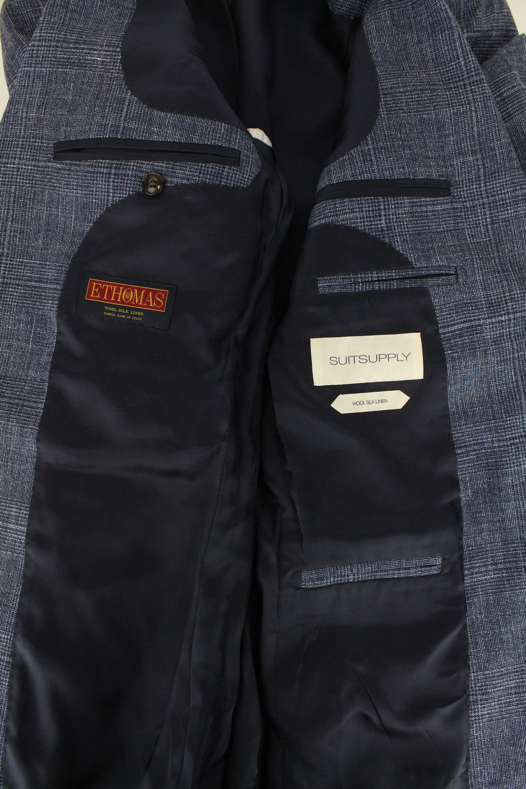 SUITSUPPLY Lazio Men's Suit UK36R Blue Glen Check Wool Silk Linen 2-Piece Look