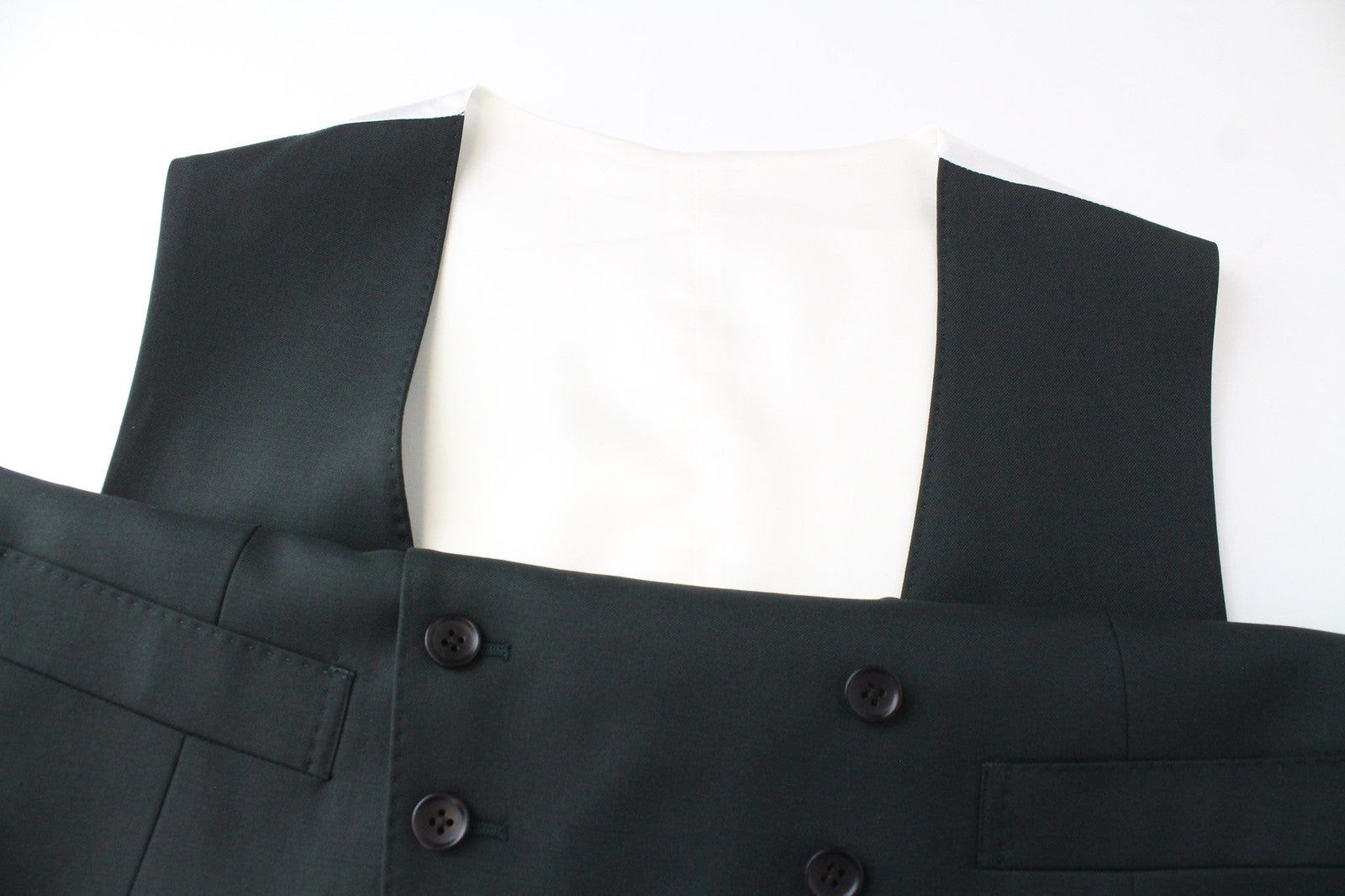 Condition: Used. Discoloration spot on the waistcoat. Pulled thread on the right leg. Please see added photos.