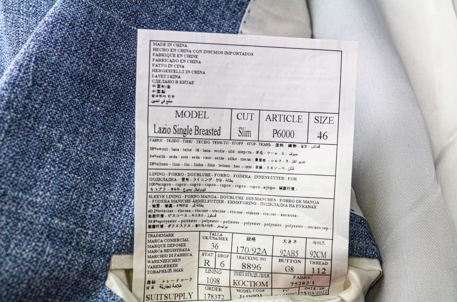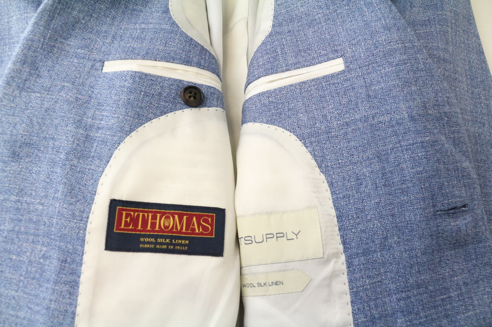 SUITSUPPLY Lazio Men's Suit UK36R Slim Blue Wool Silk Linen Classic 2Pc