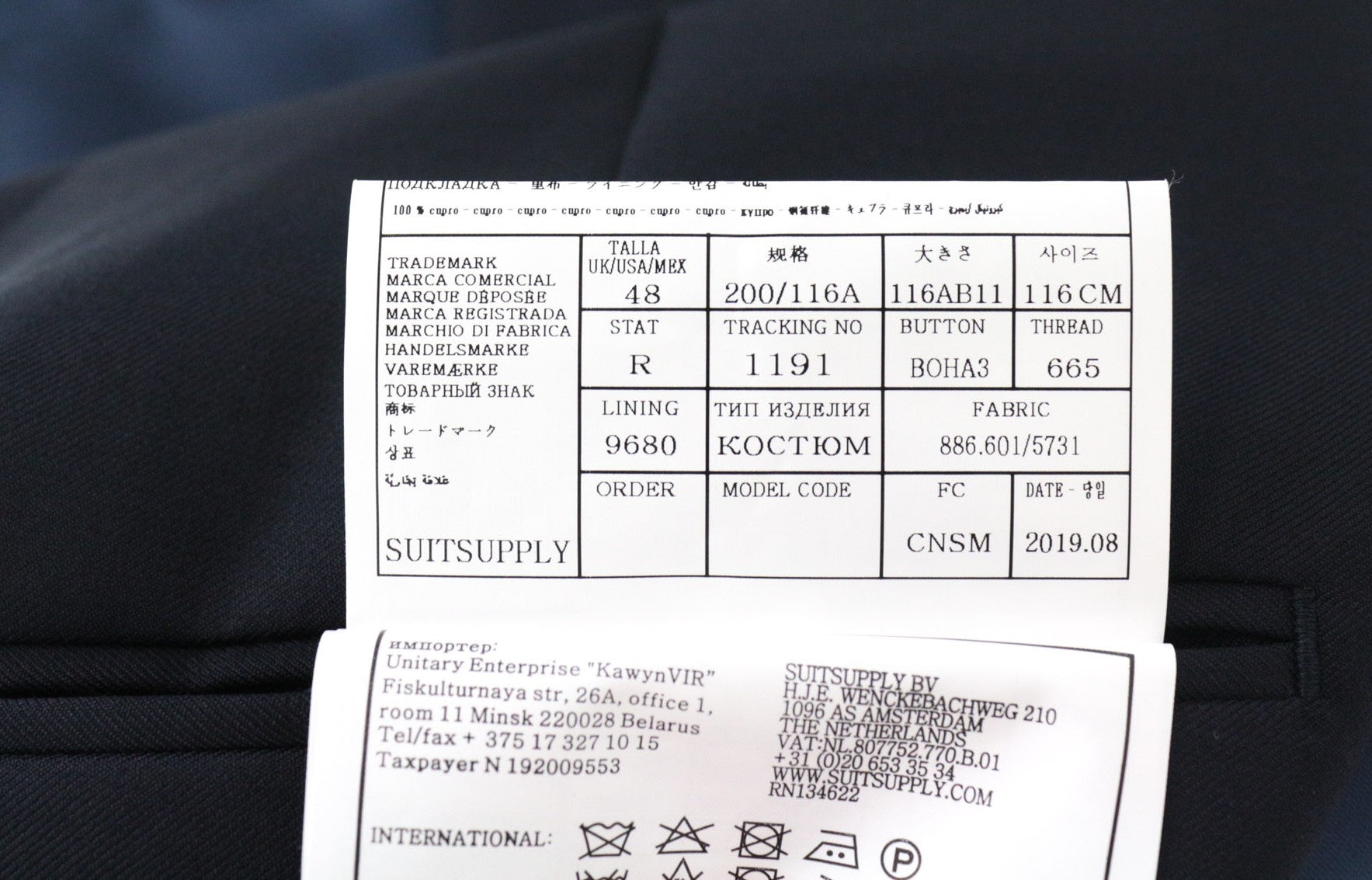 SUITSUPPLY Lazio Men's Suit UK38R Blue Slim Wool Check Mohair 2-Piece
