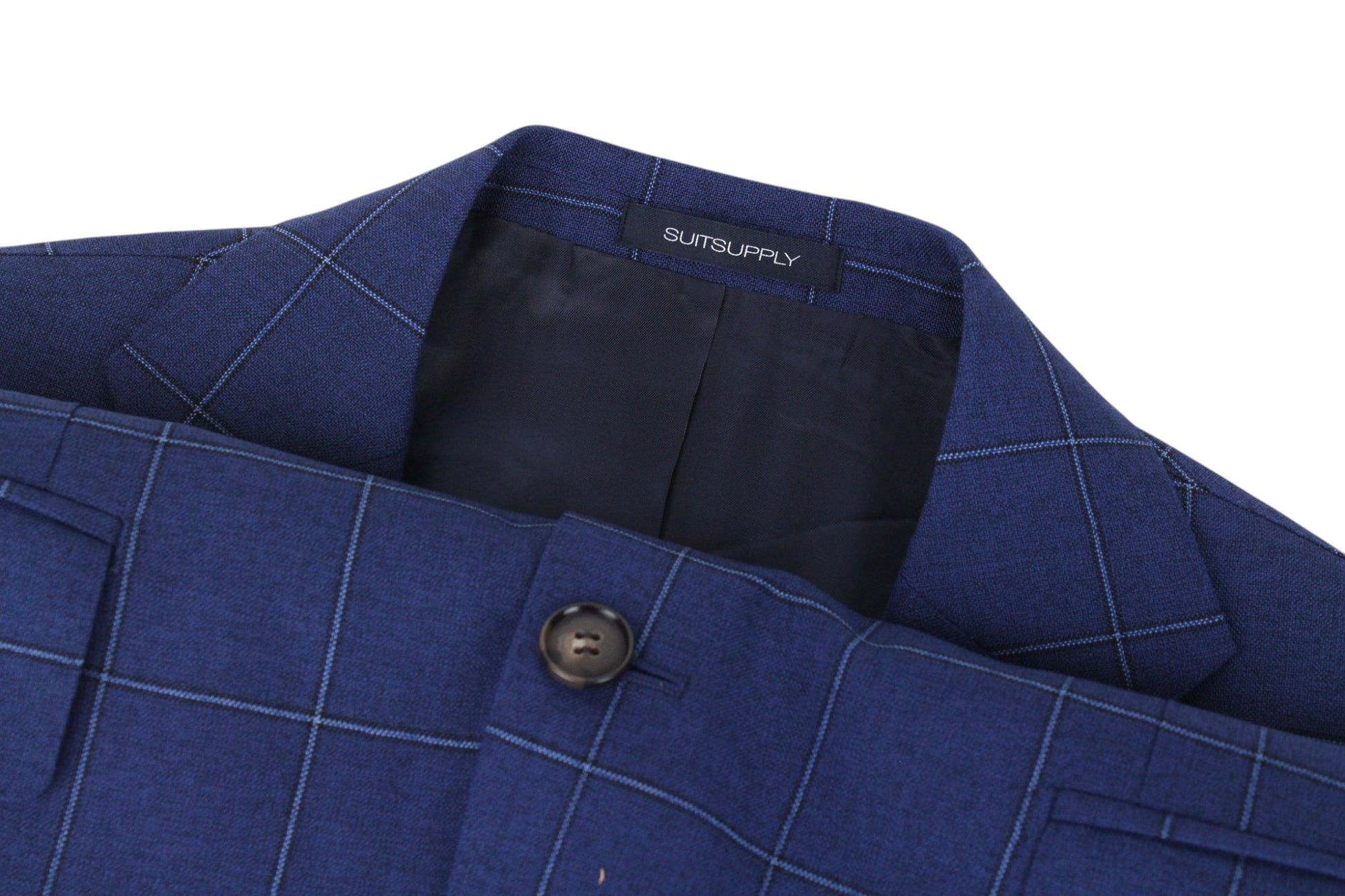 SUITSUPPLY Lazio Men's Suit UK38R Blue Windowpane Wool Mohair 2-Piece Slim