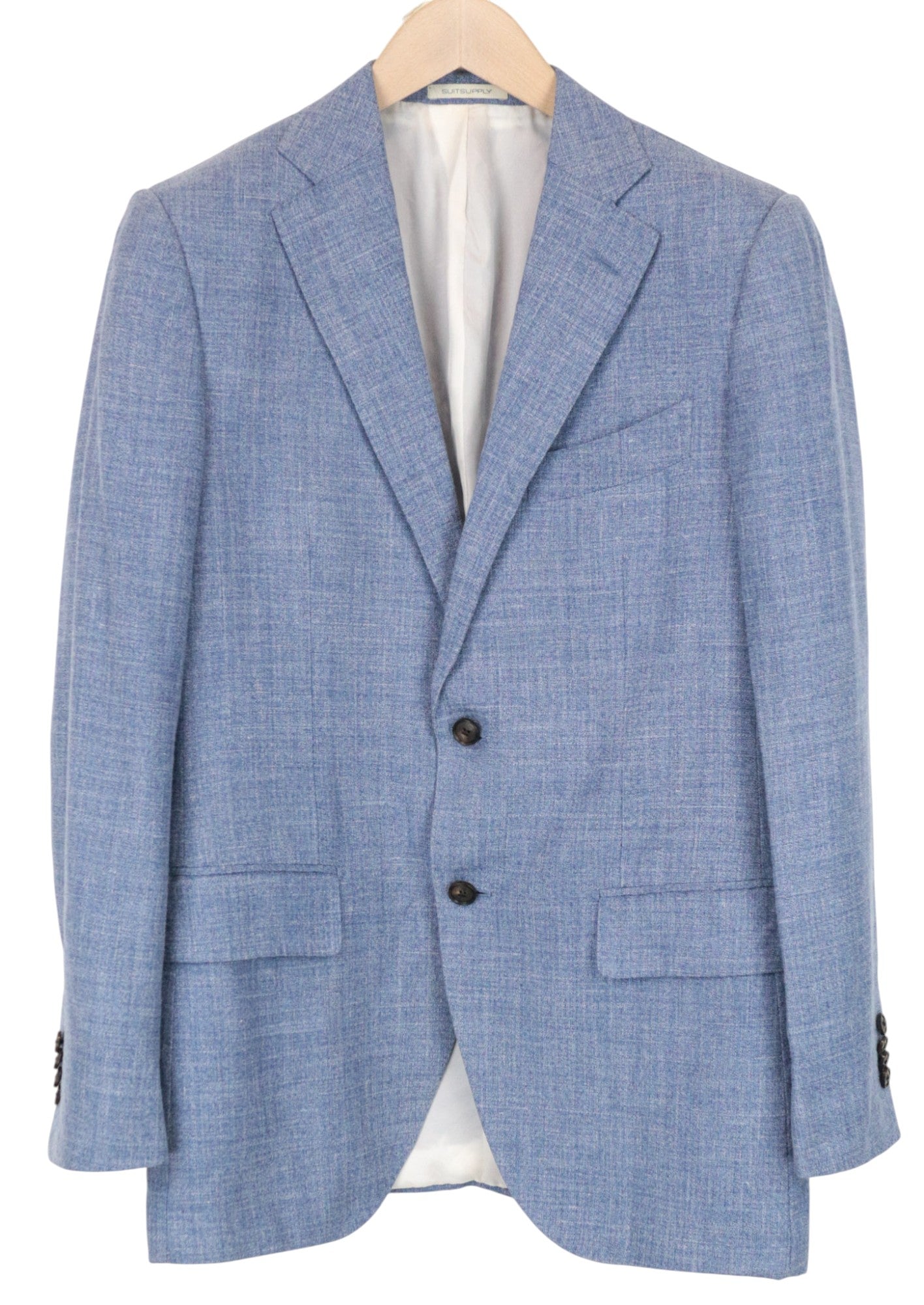 SUITSUPPLY Lazio Men's Suit UK38R Slim Blue Wool Silk Linen Classic 2-Piece