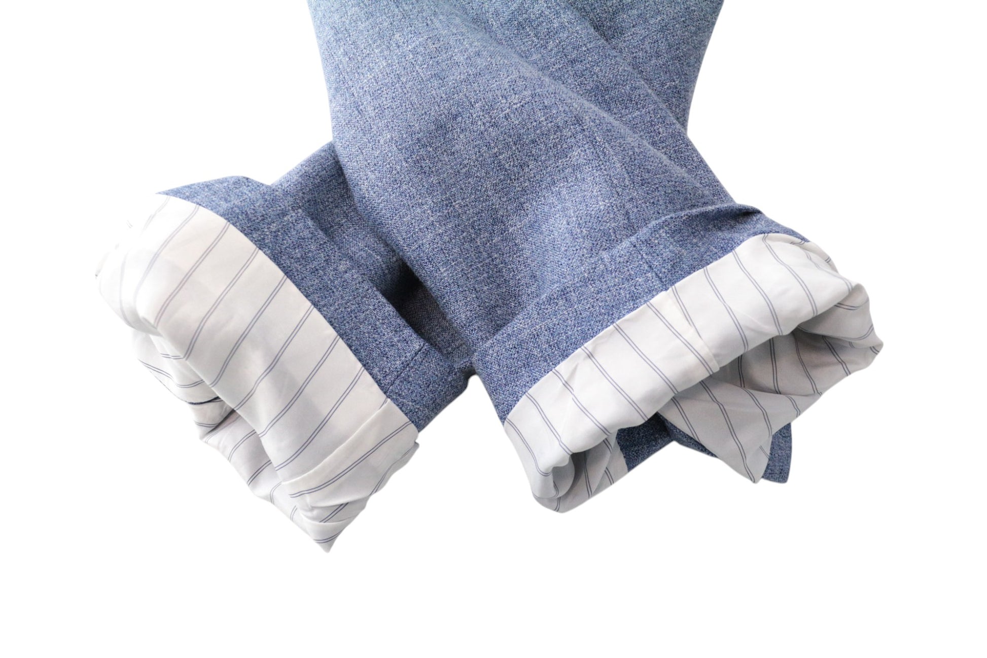 Condition: Used. Mended hems and sleeves, tear in the blazer's lining. Stained left pocket's lining. Please see added photos.