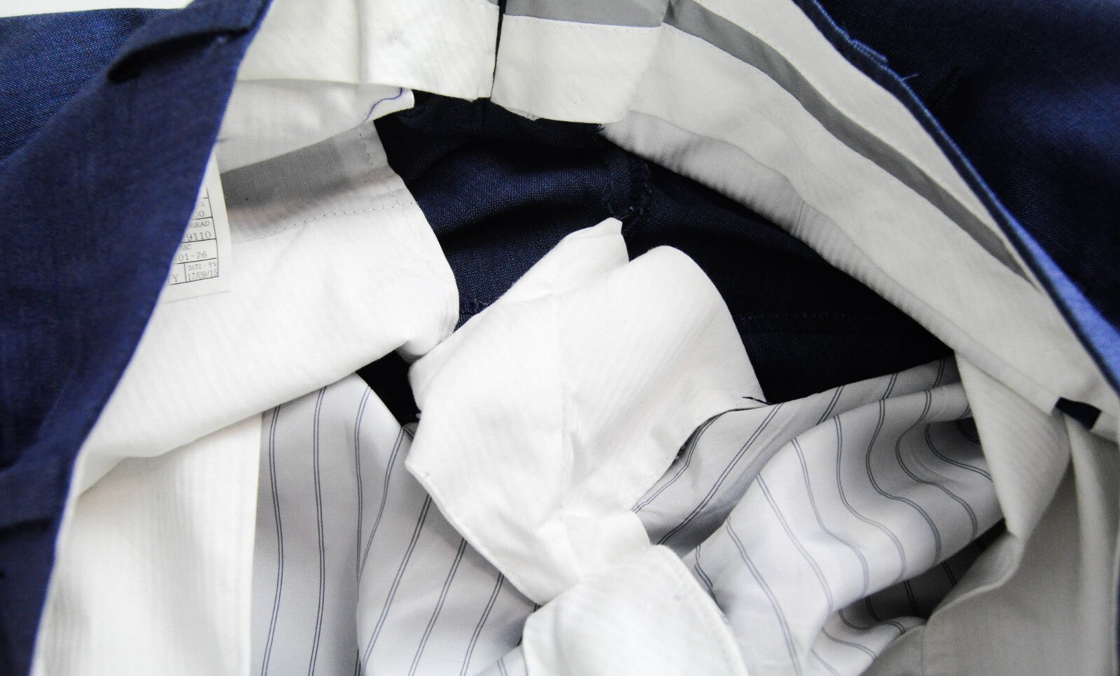 CONDITION: Mended sleeve and hems lengths. Mended crotch middle seam. Stained lining of the left back pocket. Stain around the inner seam of the left leg. Please see added photos.