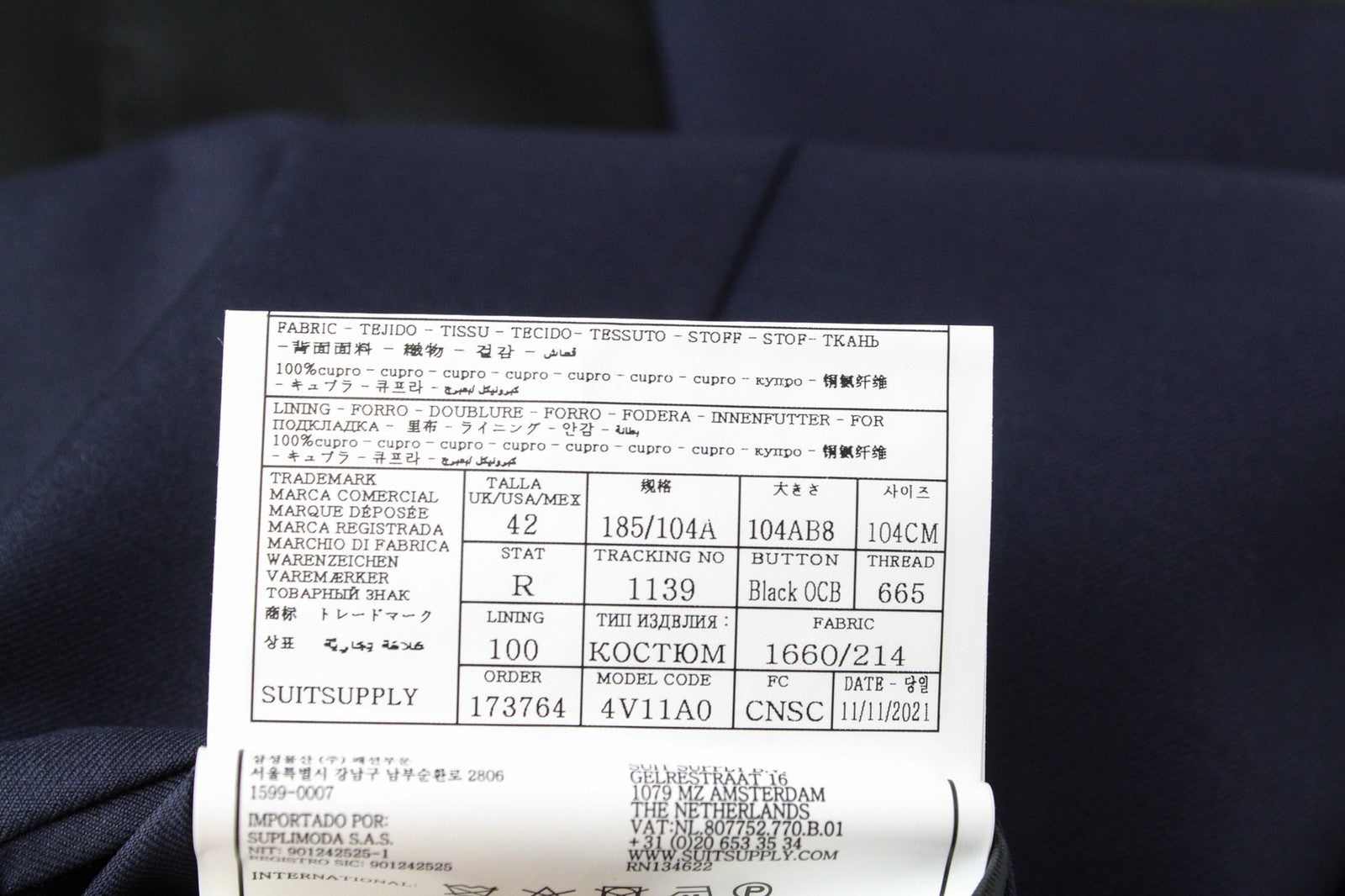 SUITSUPPLY Lazio Men's Suit UK42R Blue S130 Wool Slim Tux 3-Piece Formal Style