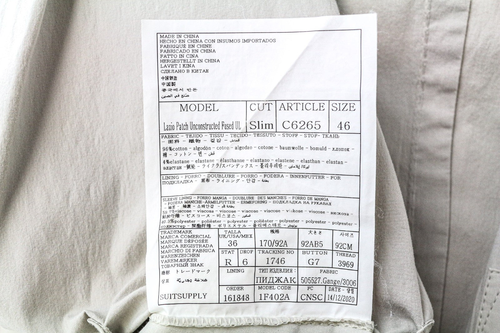 SUITSUPPLY Lazio Patch Men's Suit UK36R Beige Cotton Slim Fit 2Pc